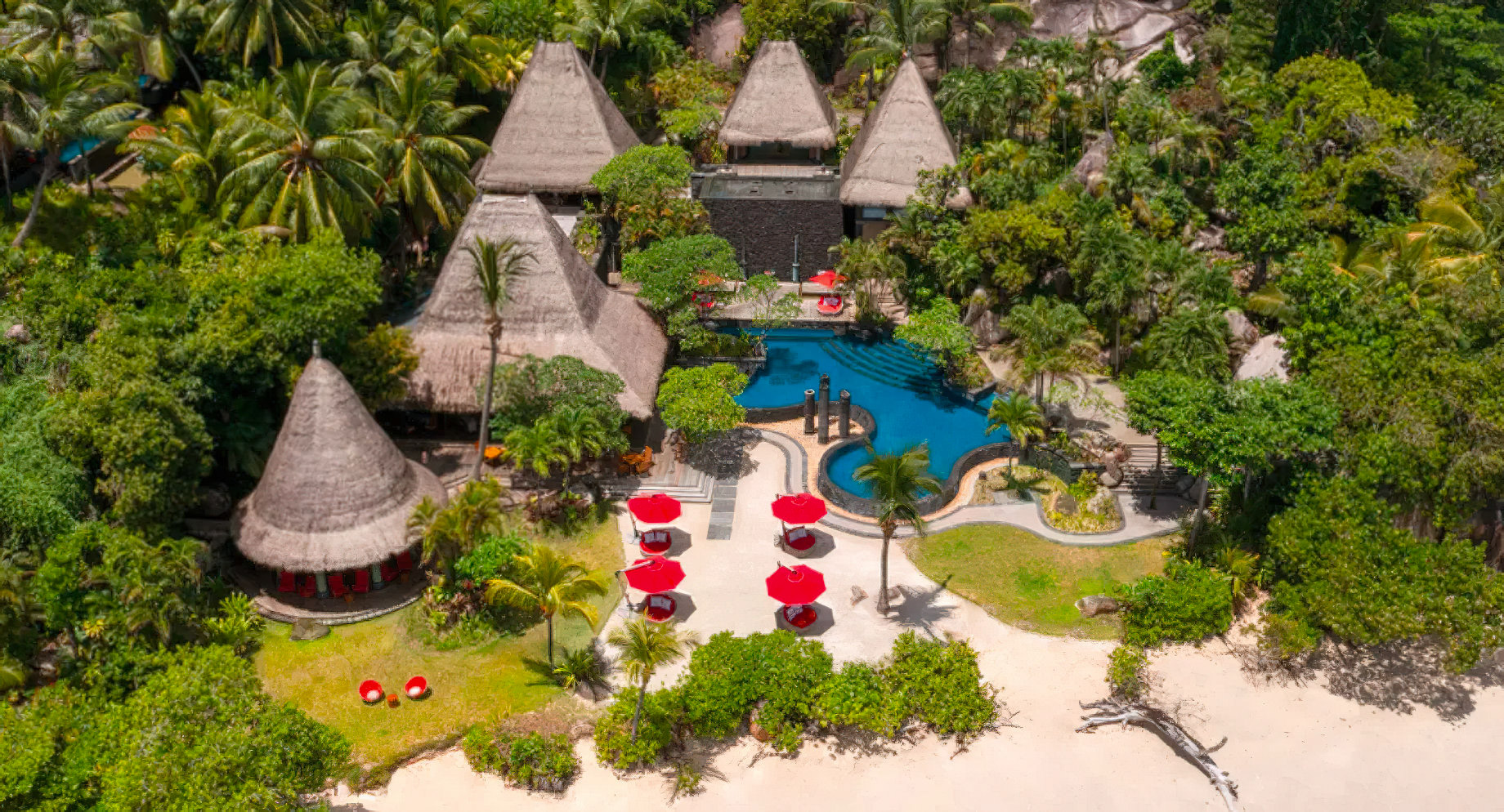 Anantara Maia Seychelles Villas – Anse Louis, Seychelles – Pool Aerial View