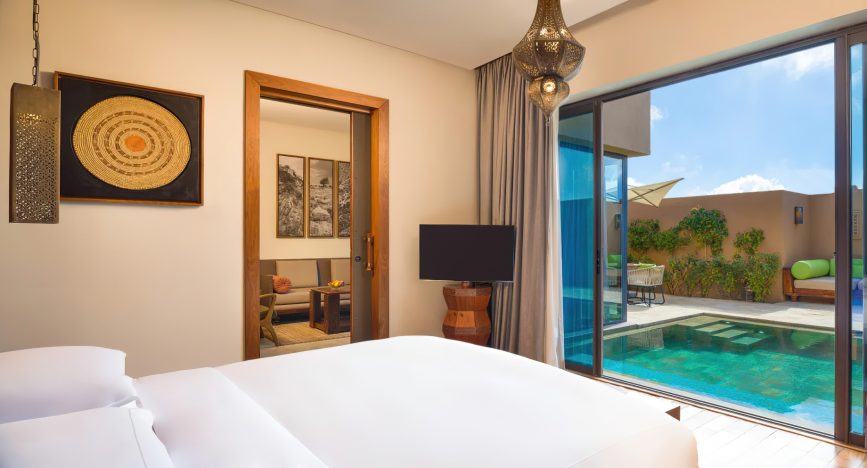 The 115 spacious rooms and villas offer luxurious authenticity immersing guests in the splendour of Omani culture inside and draw the eye outside to admire canyon, cliff, or garden views. The resort’s 82 Premier and Deluxe Rooms boast a spacious bedroom, amongst the largest in the country, and a spa-like bathroom carved out of sustainable material from the local area, complete with a rain shower and separate bath alongside a terrace or balcony. Meanwhile, 33 villas grant guests an intimate escape each with personal butler services and its own private swimming pool, their infinity-edges stretching over the cliffs or hidden in an exotic garden. For those seeking the epitome of luxury, the Three Bedroom Royal Mountain Villa will have guests marveling at the uninterrupted canyon views as they enjoy swimming in a private 14.2 metre infinity edge pool with attached Jacuzzi and outdoor rain shower.