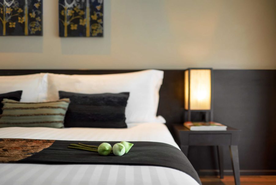 The resort boasts an array of accommodations designed to cater to various preferences and desires. The 106 spacious sunlit rooms and expansive suites encircle a pool shaded by swaying palms, mere steps away from the beach. Each is meticulously designed to reflect a harmonious blend of traditional Thai aesthetics and modern contemporary comforts. The use of natural materials, rich fabrics, and indigenous artistry adds an authentic touch to the interiors. Spend tranquil moments on your balcony, gazing over lush gardens or the Gulf, immersing yourself in serenity.