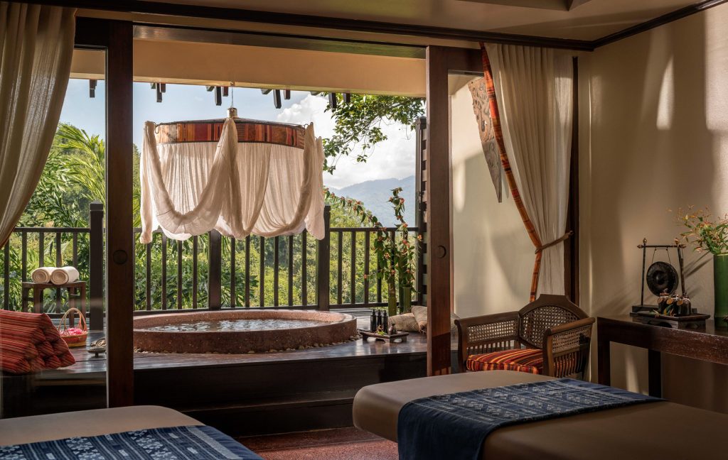 The Anantara Golden Triangle Elephant Camp & Resort stands as a true oasis of luxury and natural beauty perched on a ridge in northern Thailand overlooking the lush landscape that borders Myanmar and Laos. Set against the backdrop of rolling hills and verdant jungles, this exceptional resort offers an unforgettable escape that seamlessly blends opulence with authentic cultural experiences. The resort’s design reflects a harmonious integration with its surroundings, featuring a selection of elegant guest accommodations adorned with traditional Thai motifs, and offering breathtaking panoramic views of the converging borders of Thailand, Myanmar, and Laos.