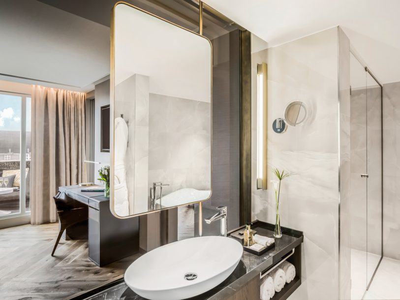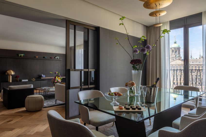 The hotel’s accommodations are a testament to impeccable attention to detail and comfort. Ranging from the lavishly appointed Deluxe Rooms to the opulent Grand Suites, each space exudes a sense of refined luxury. Plush furnishings, sumptuous bedding, and state-of-the-art amenities cocoon guests in absolute comfort. Large, arched windows offer picturesque views of Amsterdam’s bustling cityscape, allowing guests to immerse themselves in the vibrant energy of the city.