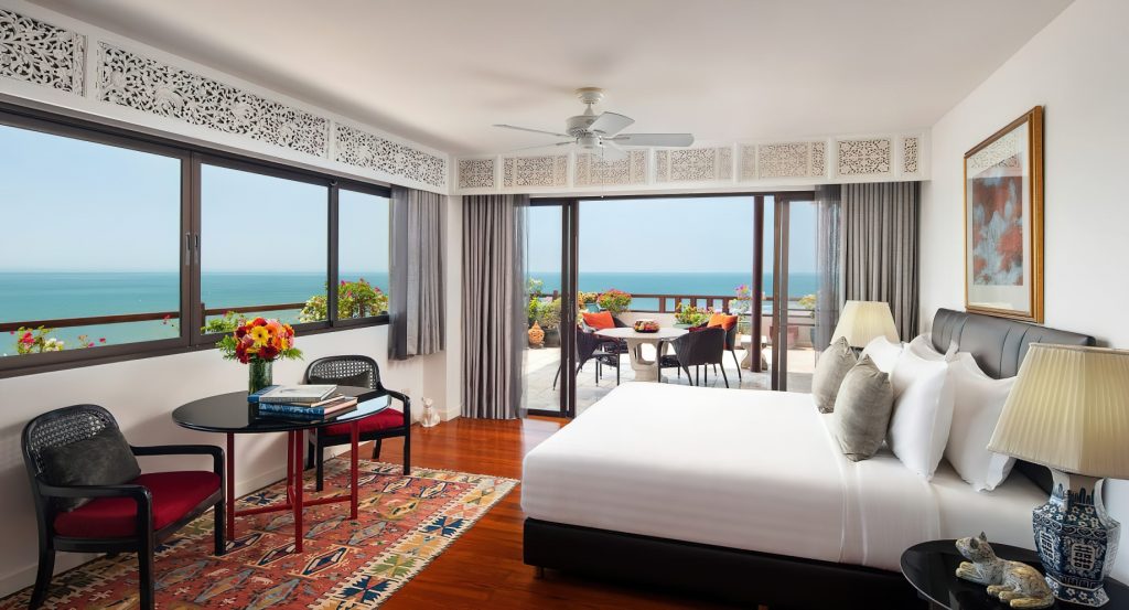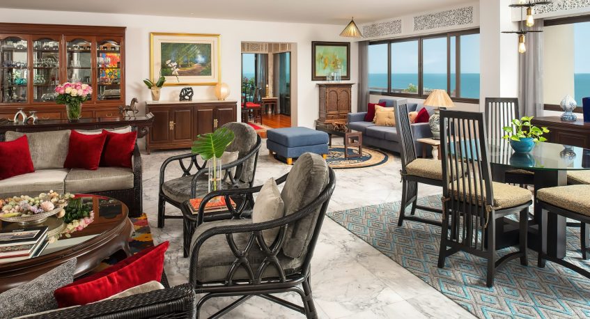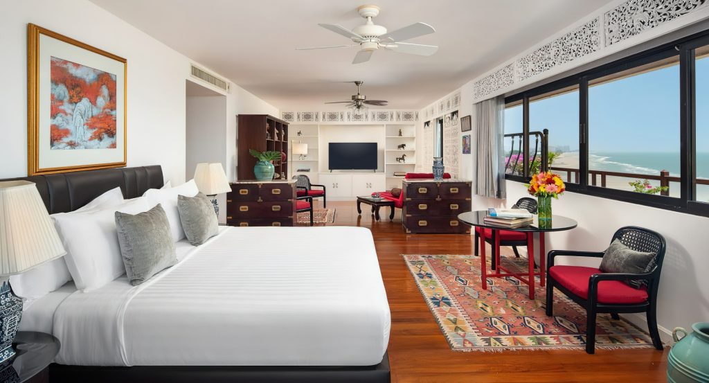 Accommodations at Anantara Hua Hin Resort are a testament to luxury and comfort. With 190 lavishly appointed rooms and suites, complemented by privileges such as Lagoon Pool & Bar access, this retreat beckons as a sanctuary of comfort. The accommodations exude romance, adorned with thoughtful amenities, ensuring an idyllic getaway for couples seeking respite. Guests can choose from a range of well-appointed rooms and suites, each designed with meticulous attention to detail. Many of the rooms feature private balconies or terraces that provide sweeping views of either the landscaped gardens or the cerulean sea.