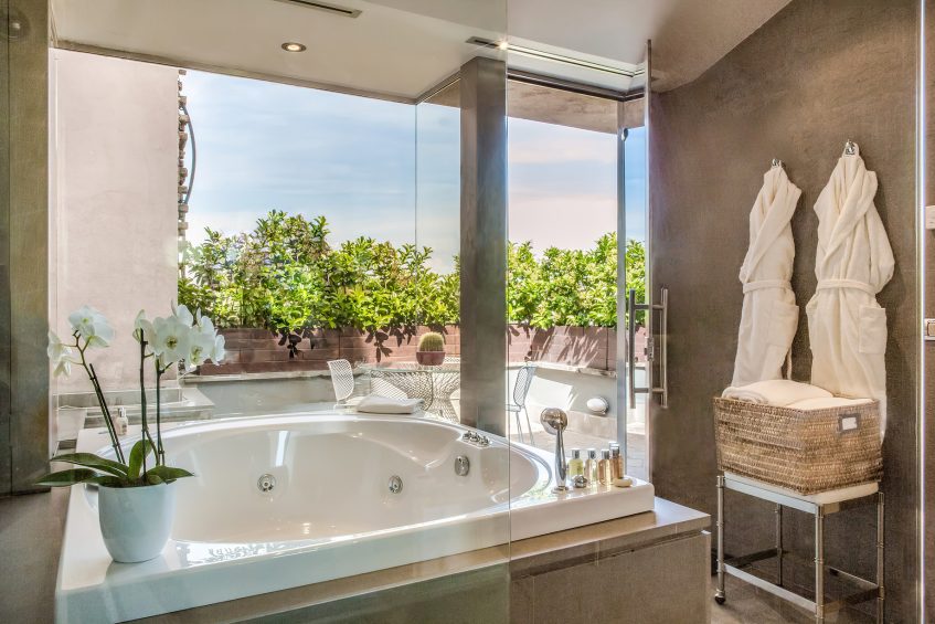 With 238 rooms and suites spanning two wings and four floors, Anantara Palazzo Naiadi is one of the most magnificent hotels in Rome. As a historic palace, each room is endowed with its own distinctive features, whether it’s a balcony overlooking the piazza or a serene rooftop terrace. This five-star luxury property offers a blend of old-world glamour, elegant comfort, and modern conveniences. The interior design ranges from contemporary to neoclassical, creating the perfect ambiance for relaxation and exploration of Rome’s charms. Accommodation options include various configurations and styles, with panoramic city views and spacious terraces. The 11 Duplex Suites offer breathtaking views of the Piazza and the Fountain of the Naiads. The three Executive Suites boast unique features such as a treadmill, Jacuzzi, steam bath, or intimate terrace for relaxation. The two Presidential Suites are perfect for business or leisure, featuring double-height French windows, marble bathrooms, and a living room with a dining area and kitchenette for intimate celebrations and private dining.