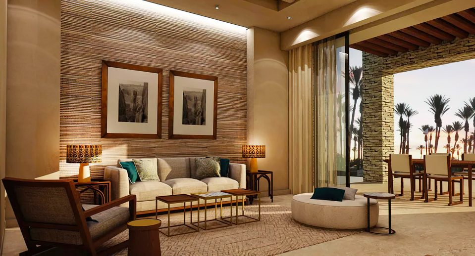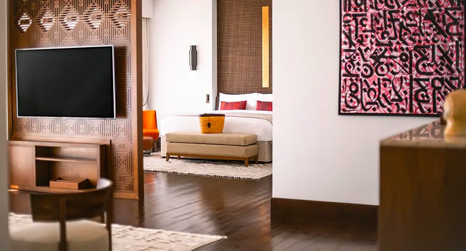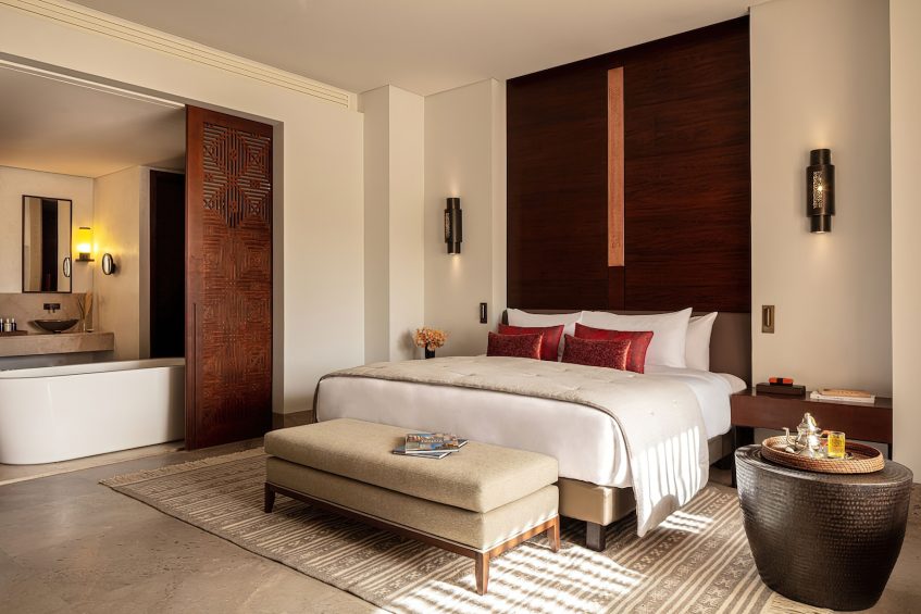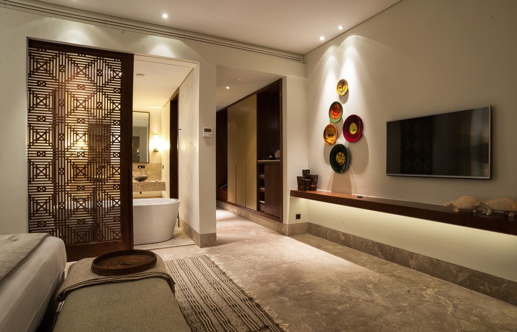 The resorts 93 suites, villas and pool villas offer the ultimate in refined luxury with an exciting blend of Moorish architecture and North African style framing picturesque desert views. Designed with a palette is inspired by the Sahara Desert mirroring the shimmering white sands, majestic canyons, and dramatic savannas, guests will enjoy a magical setting to wake up to desert sunrises or end the day with desert sunsets from the privacy of their own soothing sanctuary. The interiors boast an inviting blend of spacious bedrooms and spa-like bathrooms, complete with rain shower and separate bathtub and outdoor terraces. Every detail, from marble floor patterns, to inlaid timber screens and traditional fret-cut lighting, to artwork and handcrafts highlights Tunisiaโs rich heritage.
