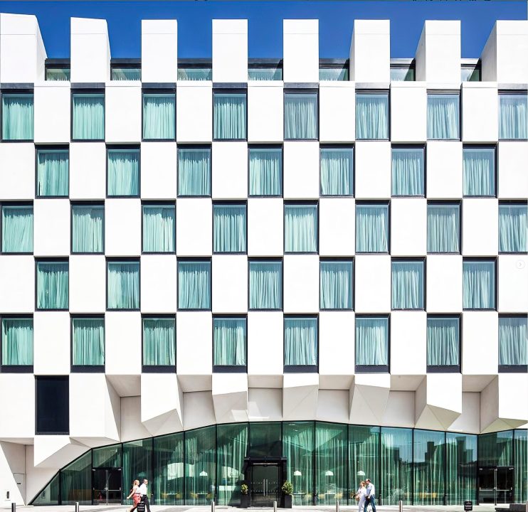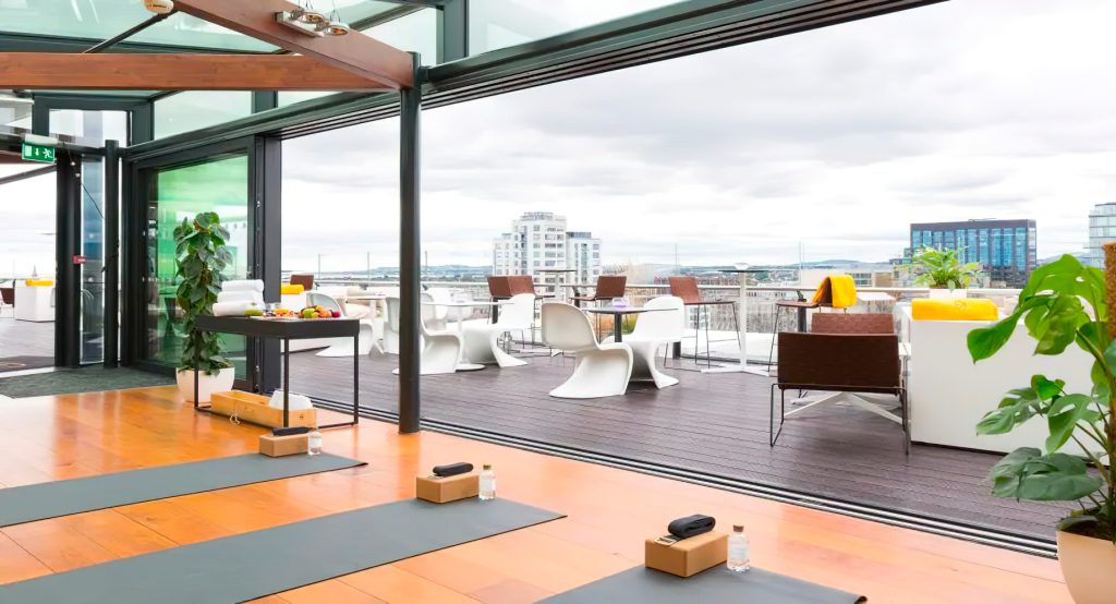 The hotel’s architecture seamlessly blends the elemental nature of the Irish landscape with a sleek urban aesthetic, creating an experience that is distinctly Irish and unmatched. The design draws inspiration from the natural geometric shapes found across the island, ranging from the rugged Burren Landscape to the unique hexagonal stones of the Giant’s Causeway. This elemental style is evident throughout the hotel, from the ground floor cocktail bar and Brasserie to the geometric layouts of the 187 luxurious bedrooms, culminating in the stunning Rooftop Bar & Terrace that offers breathtaking views of the cityscape, mountains, and sea. The hotel rooms are spacious, flooded with natural light, and designed with the highest standards of comfort and style, setting a new benchmark in city living.