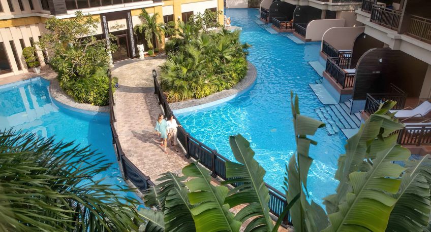 Anantara The Palm Dubai Resort, a luxurious five-star oasis situated on the crescent of the iconic Palm Jumeirah, offers a captivating blend of Thai paradise and Arabian splendor. Boasting 293 exquisite rooms and villas, each uniquely designed with contemporary Asian flair, the resort is surrounded by lush gardens and offers breathtaking views of tranquil lagoons, the pristine 400-meter beach, or the majestic Palm Jumeirah itself. After a day of exploring the wonders of Dubai, guests can retreat to the comfort of their Thai-inspired rooms and experience the warm embrace of Arabian hospitality. Indulging in international flavors at the resort’s culinary havens and unwinding by the serene lagoons completes the enchanting experience.