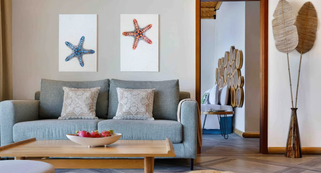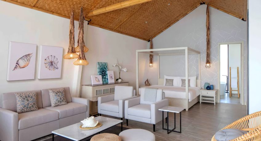 Indulge in the lavishness of 70 well-appointed rooms, suites, and villas, each thoughtfully designed with contemporary island aesthetics and soothing tones. From your private balcony or terrace, savor the breathtaking views and unwind in style. Delight in the convenience of connecting rooms, ensuring quality time spent with loved ones. As you wake up to the fresh ocean breeze, the allure of the resort’s private beach, mere steps away from your room, beckons you to enjoy blissful moments by the water’s edge.