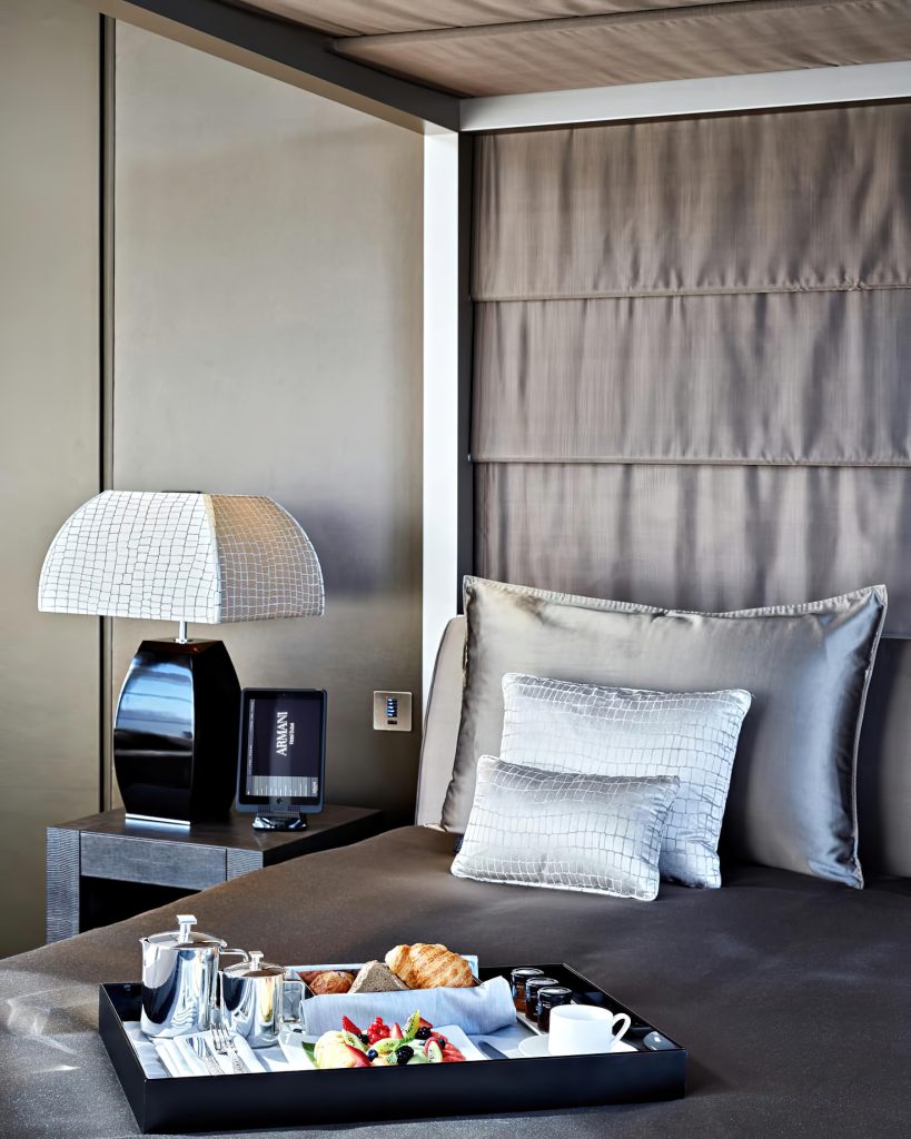 A global first, the hotel has been designed and developed by Giorgio Armani and reflects the pure elegance, simplicity and sophisticated comfort that define his signature style. Armani Hotel Dubai is the realization of the designer’s long-held dream to bring his personal style to life in the most inclusive way, by offering his customers a unique stay with Armani experience. Every detail in the hotel bears the Armani signature, beginning with warm Italian-style hospitality and moving through to each individual design element from the Eramosa stone floors to Zebrawood panels, bespoke furnishings, and personally designed hotel amenities.