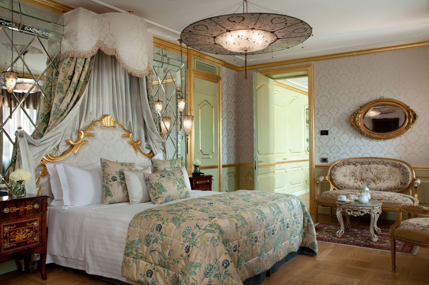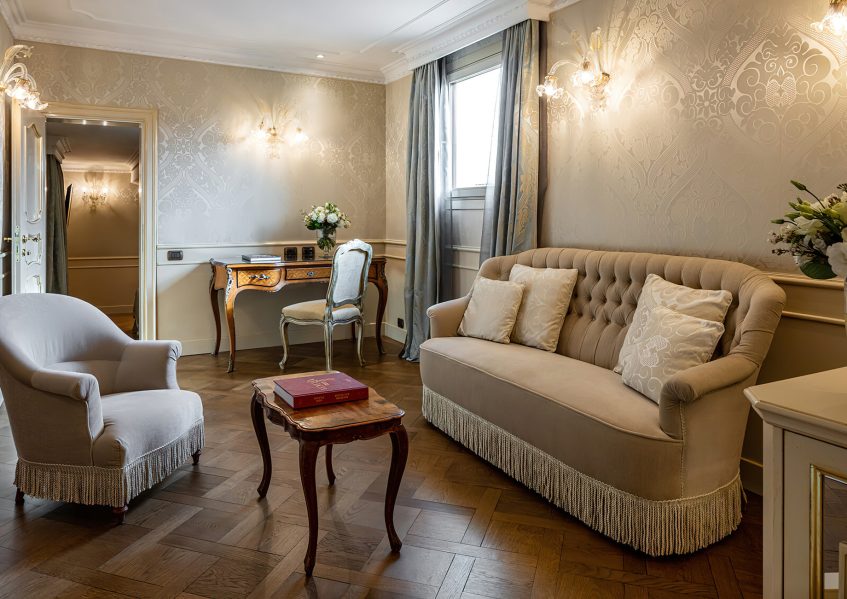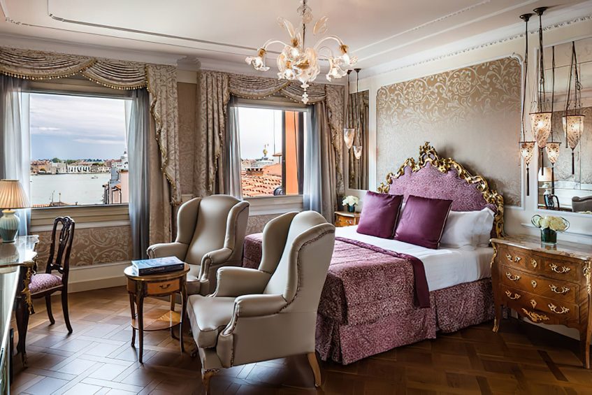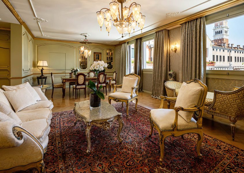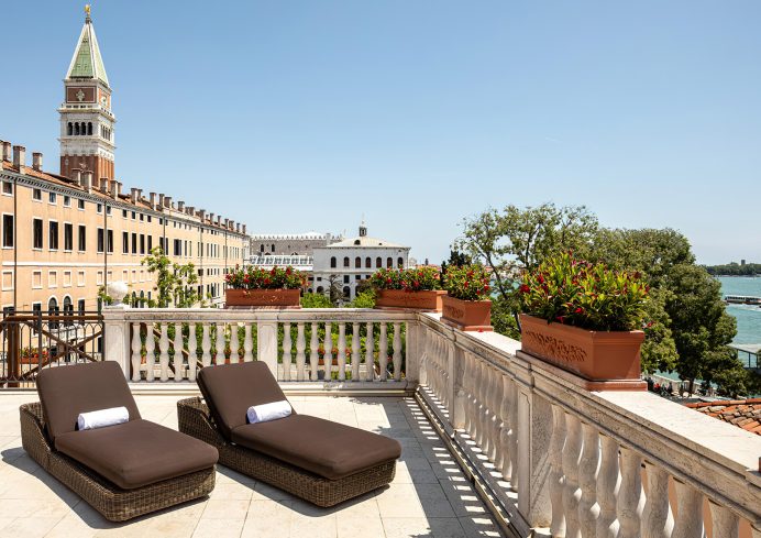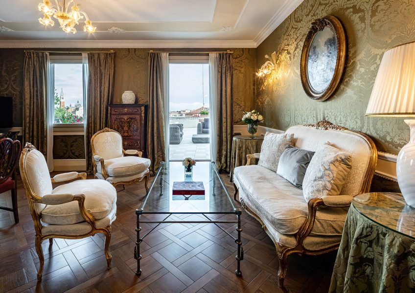 The hotel’s 91 rooms and suites in all, include touches of Italian refinement such as Venetian drapes, inlaid wood furniture, Oriental lanterns, and lamps in Murano glass. The rooms vaunt unforgettable lagoon views, while the suite terraces look onto a magnificent panoramic scene over the water to St Marks, the Royal Gardens and San Giorgio Maggiore Island. The building’s long history, allied to Venice’s eclecticism with its perennial taste for reinvention and cultural exchange with the East, is represented with materials, fabrics and decoration allude to a diversity of traditions, bridging past and present. The distinguished atmosphere of the hotel interiors features exquisite art, from French paintings circa 1700s to Murano glass and Limoges porcelain to fine cabinetmaking from the 1700 and 1800s.