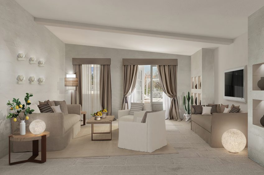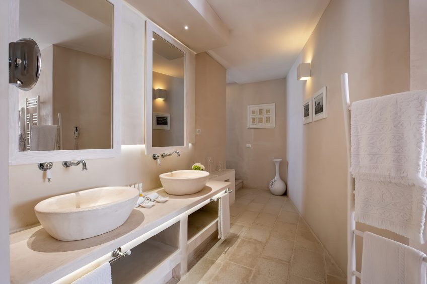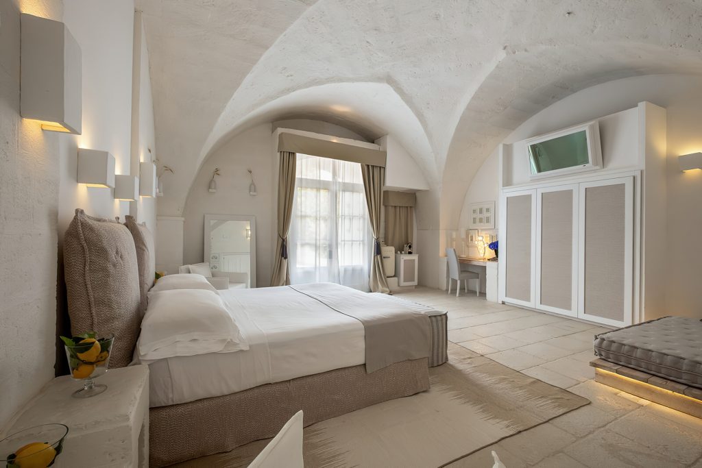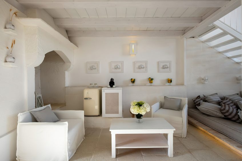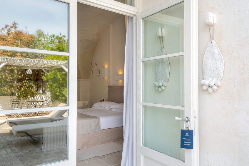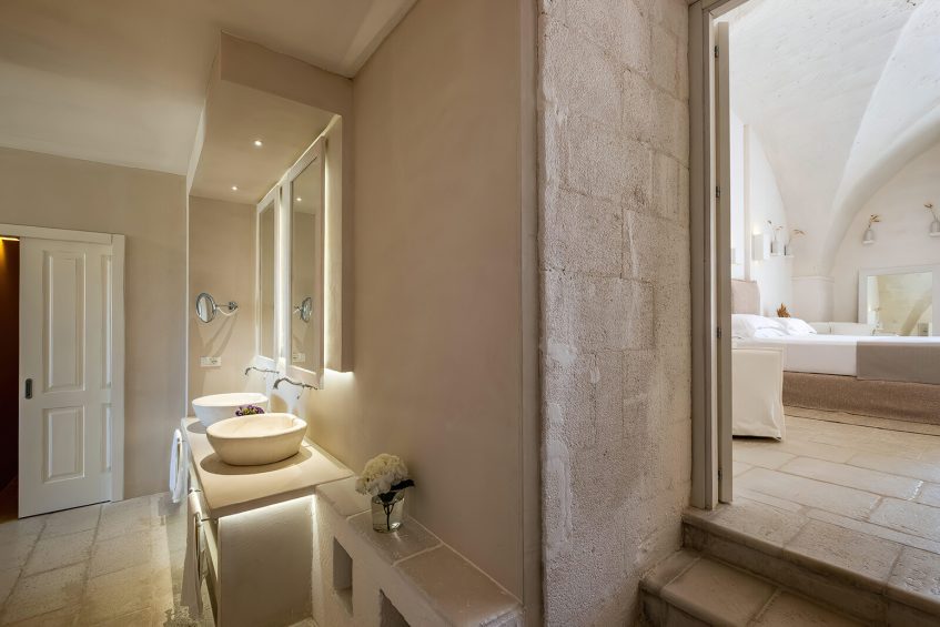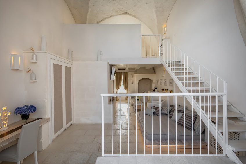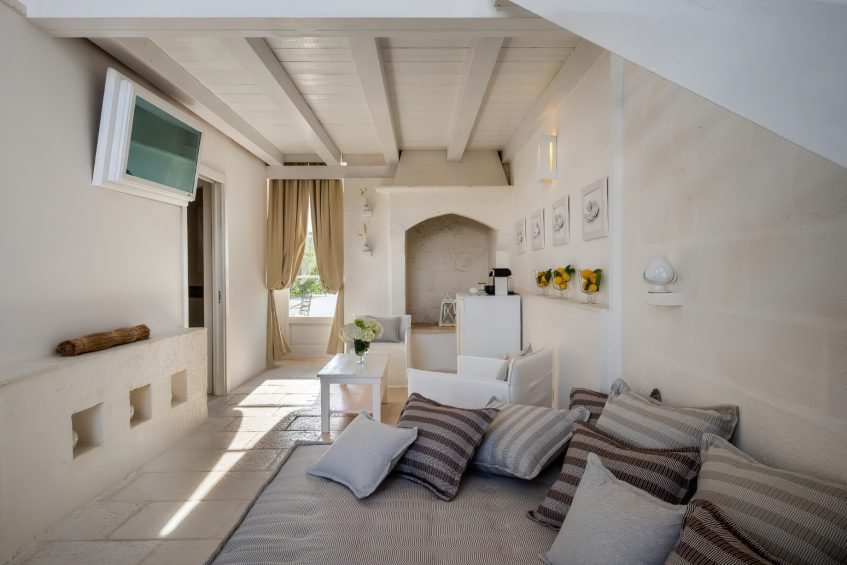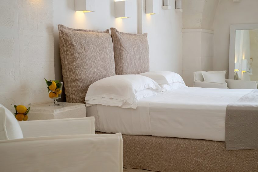 Set within a historic building dating back to the seventeenth century, the 40 rooms and suites are the soul of the hotel dotted around a central courtyard with bright, spacious interiors with white lime and exposed stone, the accommodations are characterized by linear architecture and elegant furnishings in classic Apulian style. Surrounded by the natural landscape the rooms are welcoming and equipped with every comfort, with reserved spaces, such as external verandas, some of which have suggestive lake views while others enjoy sunset views over the private estateโs Mediterranean gardens and olive groves, as well as the Adriatic.
