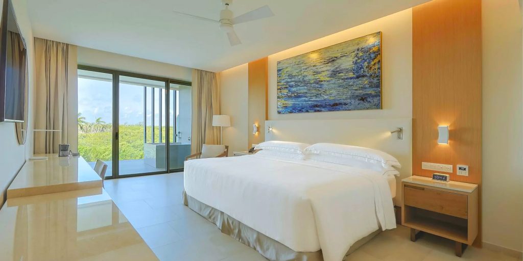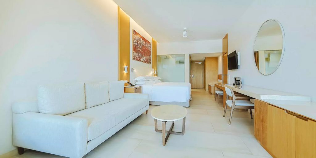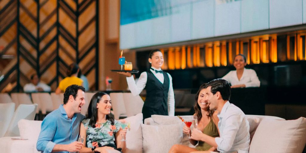 Culinary delights await at the resort’s restaurants, including buffet venues and four specialty dining options. Guests can embark on a global culinary journey at Sapporo Nikkei Experience, indulging in Japanese-Peruvian fusion cuisine, or savor Italian specialties at Dolce Vita. La Comedie specializes in French cuisine, while Agave offers an authentic taste of Mexico, complete with a taco bar. The resort’s excellent facilities include the largest infinity pool in the Riviera Maya, seamlessly merging with the turquoise hues of the Caribbean Sea. Two poolside bars and a Music Bar with live DJ music and a variety of cocktails add to the vibrant atmosphere, providing the perfect setting to unwind. For a more relaxed experience, the Pool Bar offers a picturesque spot to enjoy a delicious cocktail while surrounded by the sea.