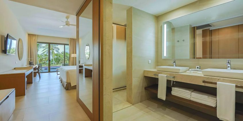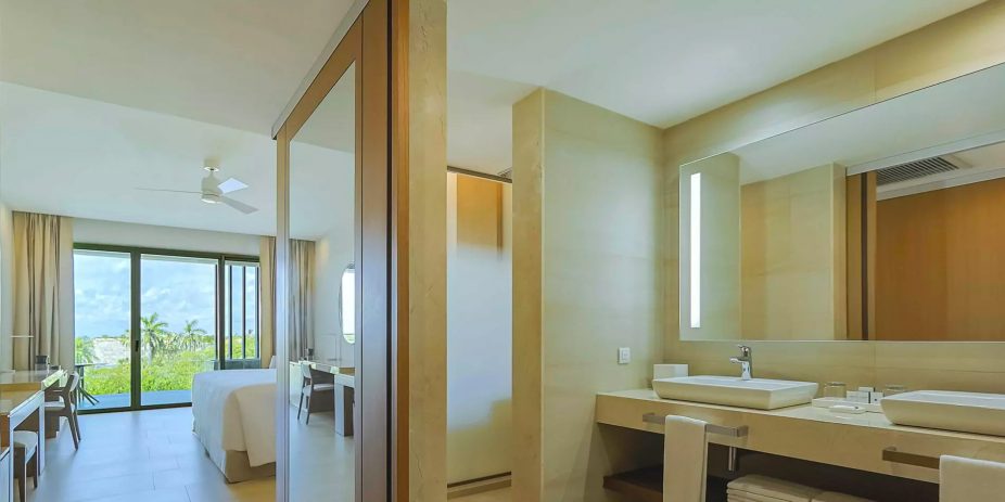 The Barceló Maya Riviera Adults Only Resort is an exclusive 5-star addition to the renowned Barceló Maya Grand Resort complex, offering an exclusive retreat for guests aged 18 and above. The resort’s impressive architecture, characterized by a majestic building and expansive spaces adorned with a combination of monochromatic textures, sets the stage for a sophisticated and upscale getaway. The 850 rooms, each equipped with a terrace and a hydromassage tub, provide a luxurious haven for guests, with over 500 rooms offering stunning views of the sea and 110 featuring private pools, all overlooking either the azure Caribbean Sea or the lush hotel gardens.