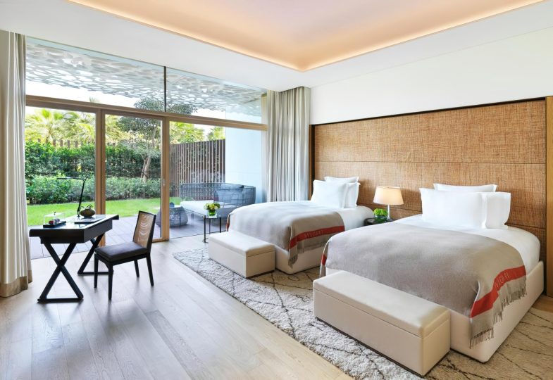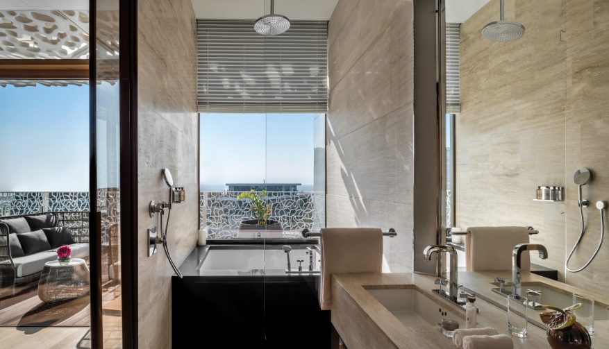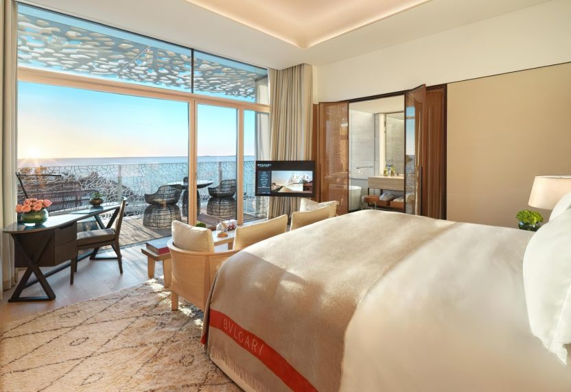 The resort includes 101 hotel rooms and suites and 20 hotel villas, all exquisitely furnished with the highest quality Italian luxury furniture brands such as Maxalto, Flos, Fexform and others, in an expression of the quality of ‘Made in Italy’. All rooms and suites have expansive views over the breathtaking Dubai skyline or the Arabian Gulf, with large balconies to truly soak up the magnificent scenery. Whether guests wish to soak up the resort’s sunsets over the Arabian Gulf, admire the majesty of the world’s tallest tower nestled amongst the eye-catching Dubai skyline, or enjoy the ambiance of the riviera style marina and beach club, there are rooms to meet every taste. Each room and suite have walk-in wardrobes, state of-the-art technology and its own private balcony, a unique feature of The Bvlgari Resort Dubai.