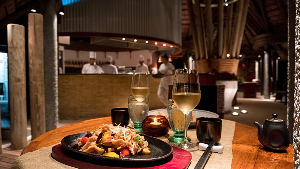 The resort offers spacious contemporary accommodations surrounded by lush landscape and scintillating lagoons, with ocean views or beach settings. Guests can choose from one of the 42 Tropical Garden View Rooms, 184 Junior Suites, 40 Senior Suites, 22 Family Villas, 16 Beach Villas, 8 Hillside Villas or the stunning Presidential Villa. With a breathtaking panoramic view of the ocean high on the hillside, the three-bedroom Presidential Villa has been designed to offer the ultimate luxury experience for guests. Equipped with LCD TV, mac mini, mini wine cooler with a selection of wine, mini-bar, tea and coffee facilities, Nespresso machine with capsules, complimentary electric buggy, villa host and complimentary WI-FI. The Presidential villa has its own gym, a private steam room & sauna, private pool and deck and outdoor dining kiosk.