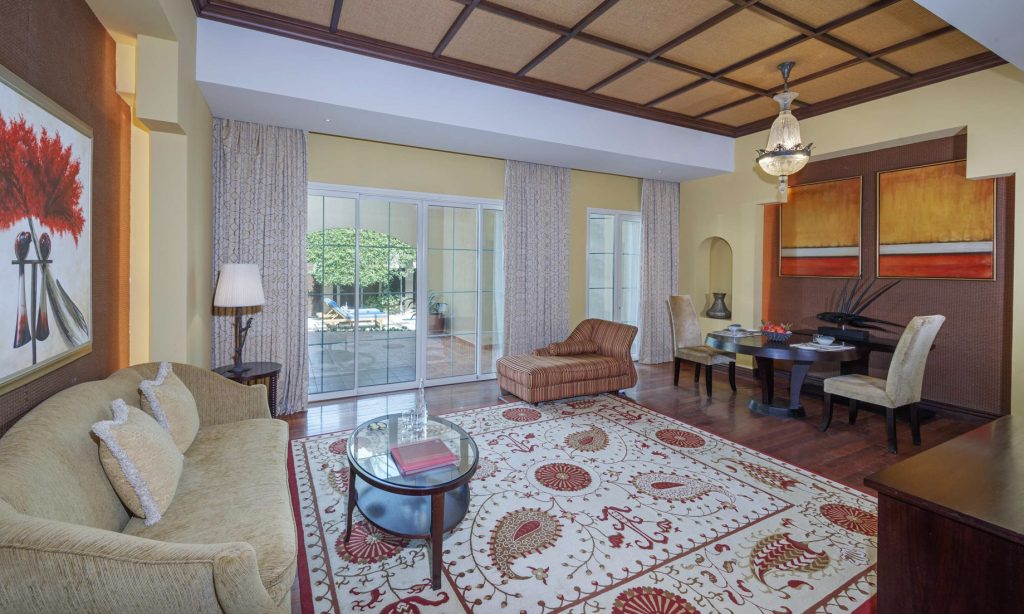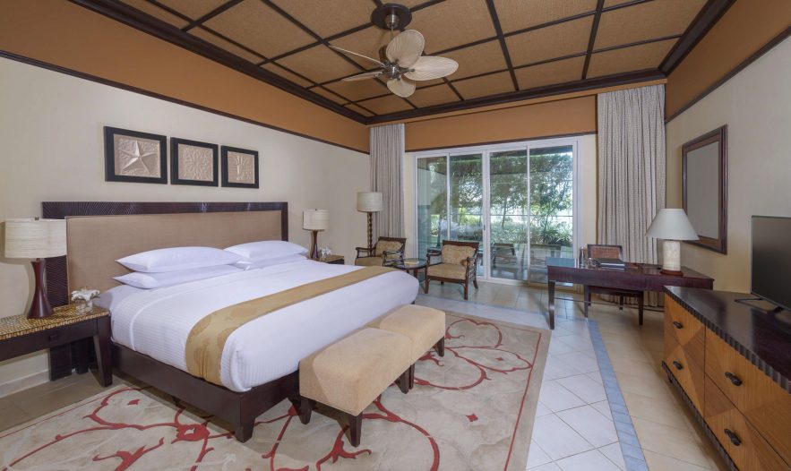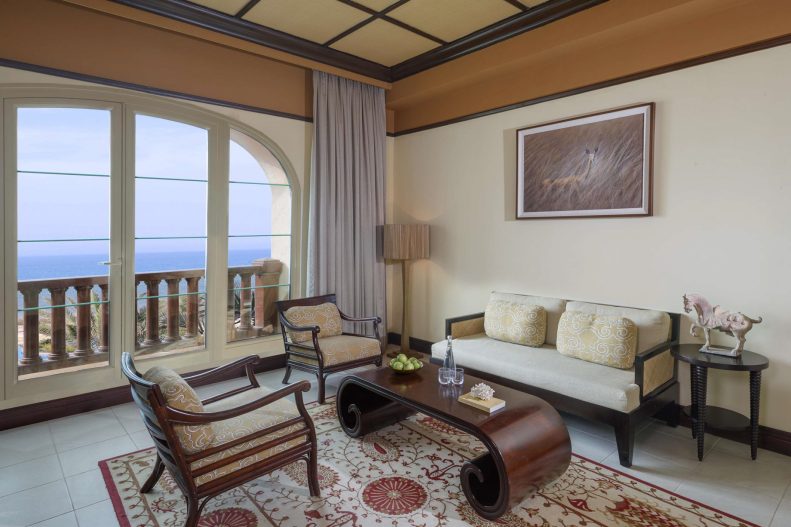 The resort features luxurious villas and suites, each elegantly designed with modern amenities and a touch of Arabian charm. Whether overlooking the sparkling sea or the captivating wildlife reserve, the accommodations provide a serene sanctuary where guests can relax and unwind with an exquisite design that seamlessly blends traditional Arabian elements with contemporary elegance, creating a harmonious atmosphere that is both inviting and enchanting. Each of the spacious rooms and villas exudes a sense of refined comfort, adorned with plush furnishings and modern amenities. Whether overlooking the Arabian Gulf or the lush gardens, guests can indulge in breathtaking vistas from the privacy of their own terrace.