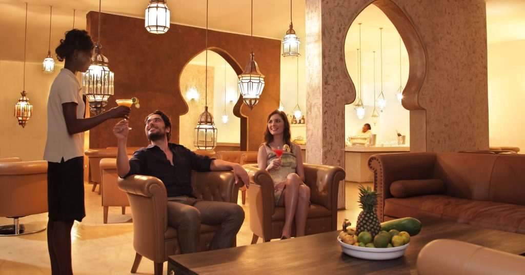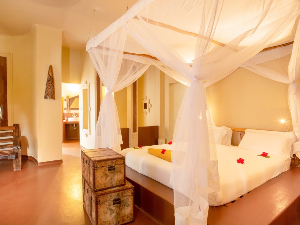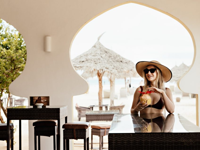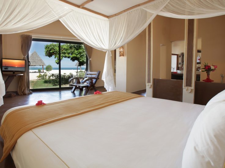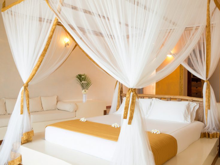 An ocean view room at Gold Zanzibar Beach House & Spa is an idyllic place to stay for a luxury vacation on this island paradise. With 67 rooms, Deluxe Garden or Ocean View, Single, Double or Twin, each room at Gold Zanzibar has its own veranda, a private outdoor area with fantastic views of the sea or the tropical gardens. Pure whites and golden tones diffuse a soft light in large rooms. Contemporary design, quality wooden furniture displaying carved decorative elements with an exotic taste are mixed in a natural style. The various room types, each meet different needs, but all provide ample space with an intimate and relaxing atmosphere. The architecture is a mix of African and Arab influences translated according to contemporary design.