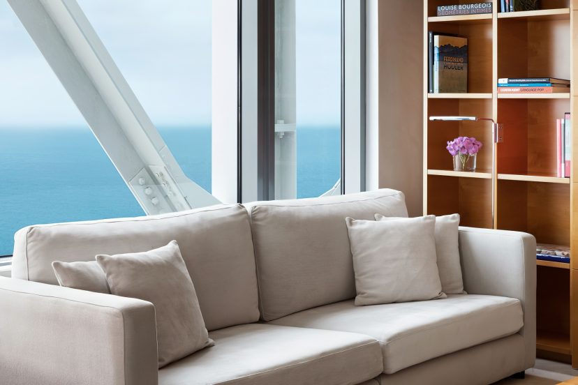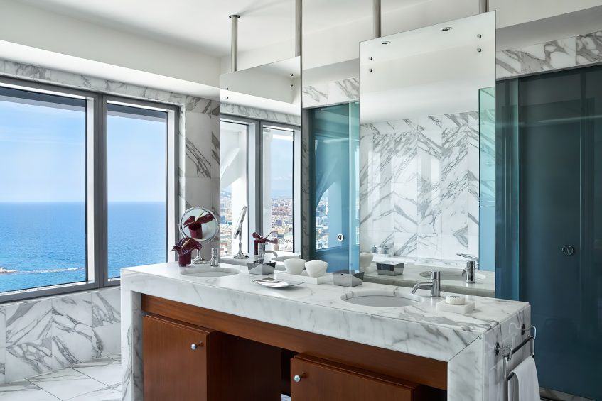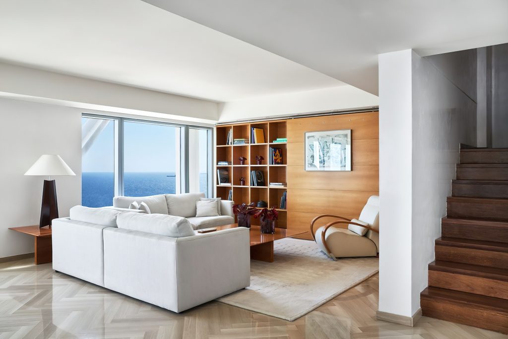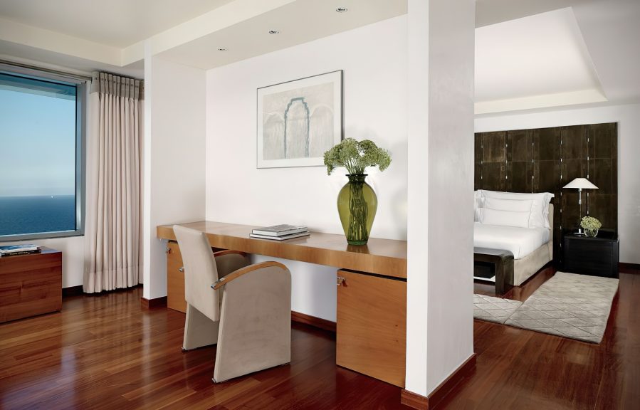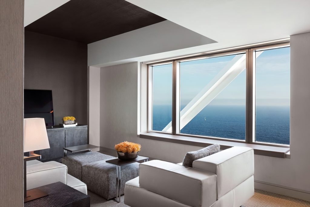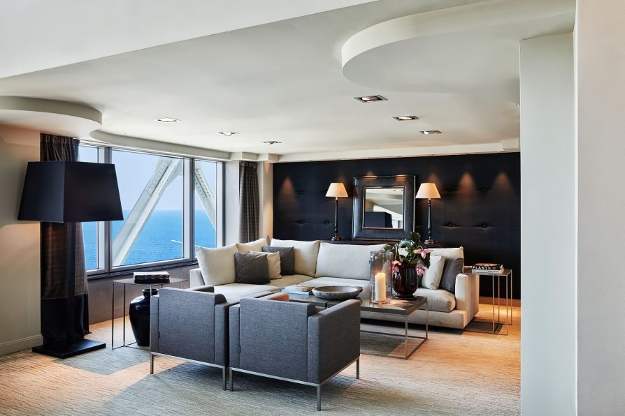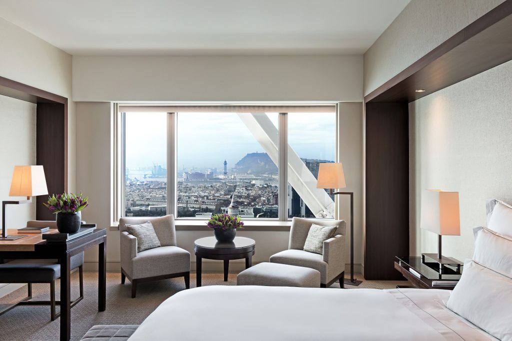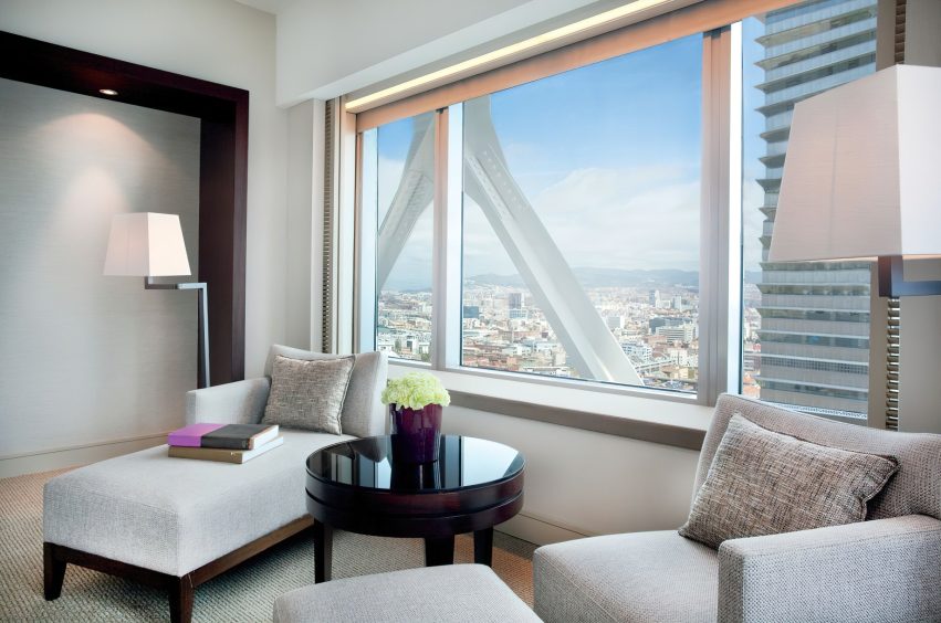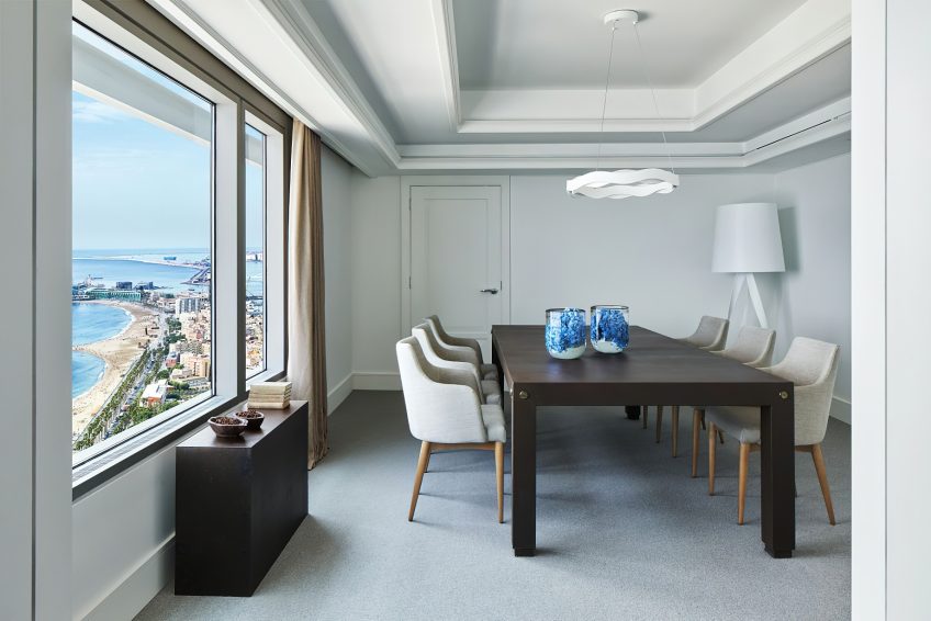 The waterfront hotel’s 455 rooms and 28 exclusive Penthouses feature sleek, modern design complemented by an impressive 20th century collection of works by contemporary Catalan and Spanish artists. Understated elegance, large windows framing the city or sea and spacious layouts with areas dedicated to work and relaxation are featured in guest rooms and suites offering the ultimate luxury experience. Suited to the world’s most discerning individuals with unforgettable views the 28 luxury, serviced Penthouses combine inspiration and clever living with custom tailored bespoke benefits. The elegant sea-view guest lounge of the Club Level Provides exclusive services and fine complimentary food presentations throughout the day