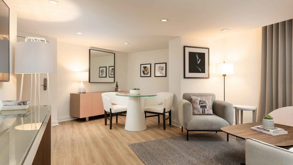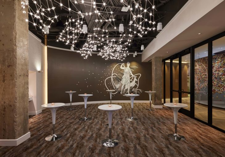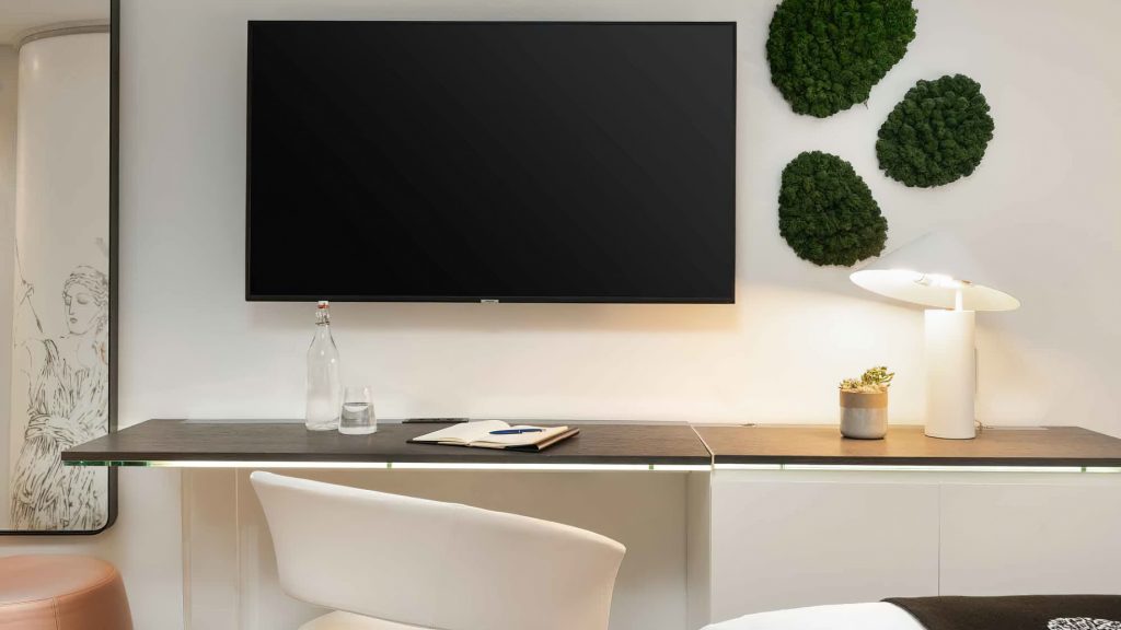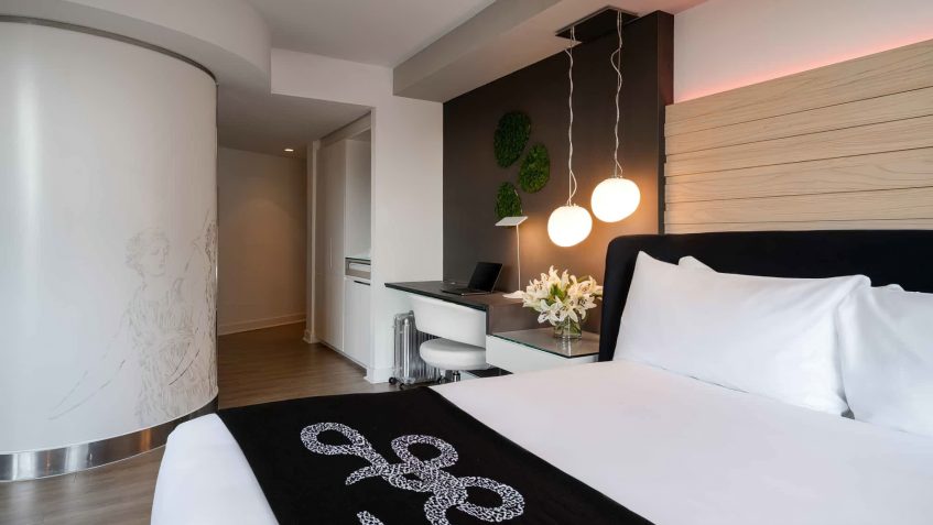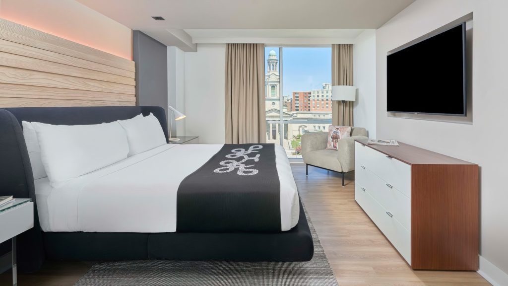 The hotels 191 luxurious guestrooms and suites are designed to provide a relaxing and artful ambiance with a sleek and modern aesthetic to appeal to like-minded individuals. The art featured in the rooms allows for introspection, while the comfortable and luxurious bedding promotes relaxation. The workspace, equipped with the latest technology, serves as a reminder to prioritize work before play. Every room at Hotel Zena reflects the hotel’s expressive and artistic personality and is equipped with everything needed for work, relaxation, or exploring the town. In addition to ample workspace with Wi-Fi and high-end bath amenities, guests can enjoy blackout window shades, 400-thread-count linens, and a virtual concierge accessible via voice commands.