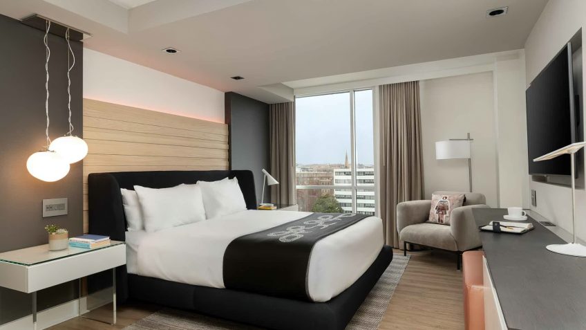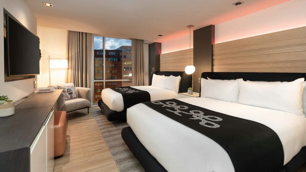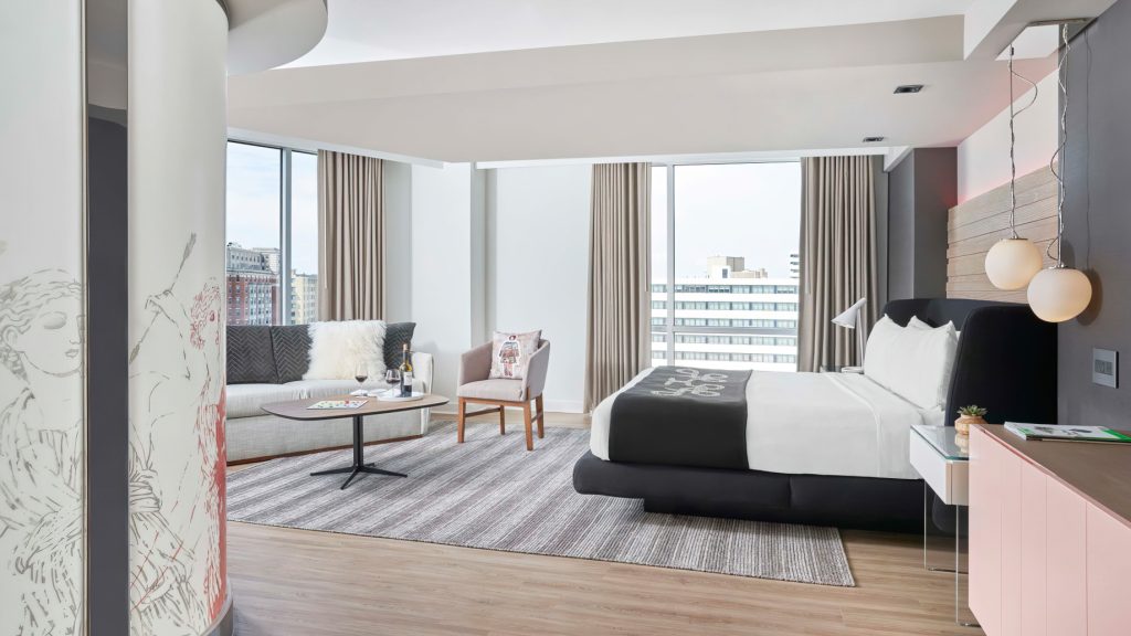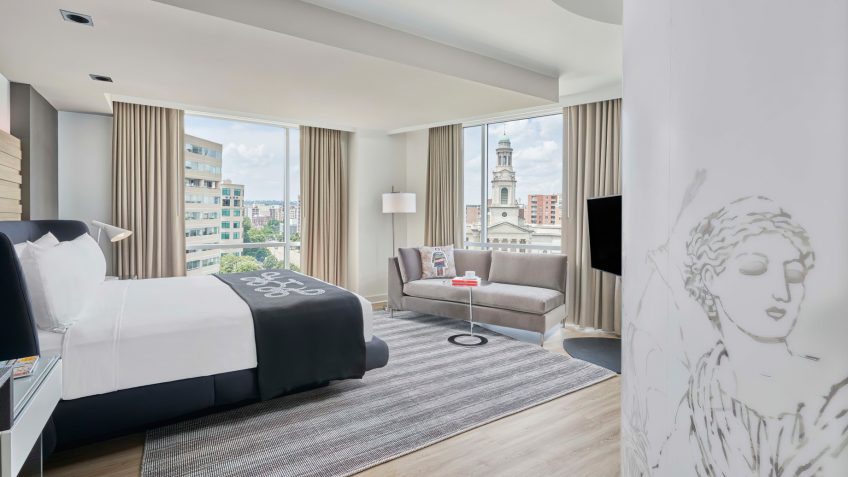 Hotel Zena, an Urban Retreat By Viceroy, is a vibrant cultural hub nestled in the heart of Washington D.C. that celebrates art, music, and design. It is a unique fusion of a hotel and an art gallery that showcases works honoring the contributions and bravery of women. You can experience the city’s best social scene at Figleaf, the expansive bar and lounge, featuring a curated selection of cocktails, wines, and a New American menu. For breathtaking views of the iconic city skyline, visit Hedy’s Rooftop on the 14th floor. The location at the intersection of downtown D.C. and the 14th Street Corridor puts it in close proximity to the city’s renowned museums and landmarks.
