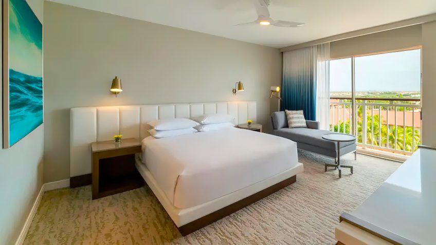 The Hyatt Regency Aruba Resort Spa and Casino is a premier destination located on the stunning island of Aruba in the southern Caribbean Sea. This spectacular luxurious beachfront resort is located on a 12-acre property on Palm Beach in Aruba, one of the most beautiful beaches in the world. The resort offers an array of activities and amenities, including a casino, two pools, and multiple dining options. The newly renovated Trankilo adults-only pool and family activity pool with a water slide are the highlights of the resort’s pool complex. Private cabanas are available for guests looking for a more exclusive experience. The resort is also home to ZoiA Spa, where guests can indulge in rejuvenating treatments.