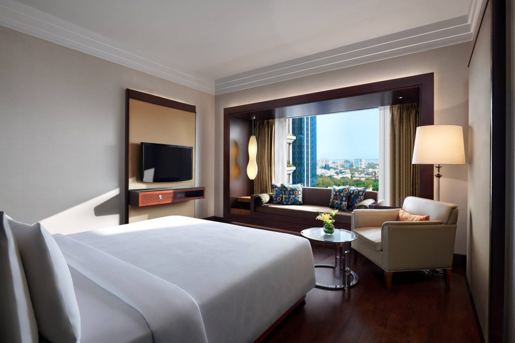 Overlooking the lush acreage with picturesque views of Cubbon Park, this five-star luxury Bangalore hotel features contemporary guest rooms and suites aptly furnished with sleek designs and lavish amenities to provide an exceptional hotel experience. At the end of your day, retreat to a spacious hotel rooms and suites with stylish dรฉcor, plush bedding, marble bathrooms and private balconies. The contemporary guest rooms and suites aptly furnished with sleek designs and lavish amenities provide serene relaxation and comfort.
