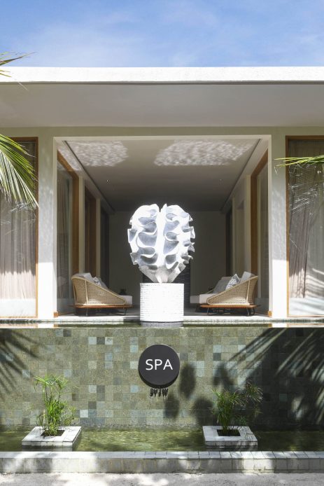 JW Marriott Maldives Resort & Spa is a sanctuary of scenic luxury surrounded by the incredible azure waters of the Maldives. A tropical island paradise situated on a private island in Shaviyani Atoll, the resort offers stunning Indian Ocean views. Each villa draws inspiration from the natural surroundings and local Maldivian culture, incorporating colors and materials that highlight the island destination. Thatched roofs are reminiscent of upside-down Dhoni boats, the traditional Maldivian wooden fishing vessels, and slanted roof tips recall white herons dipping their heads into the water.
