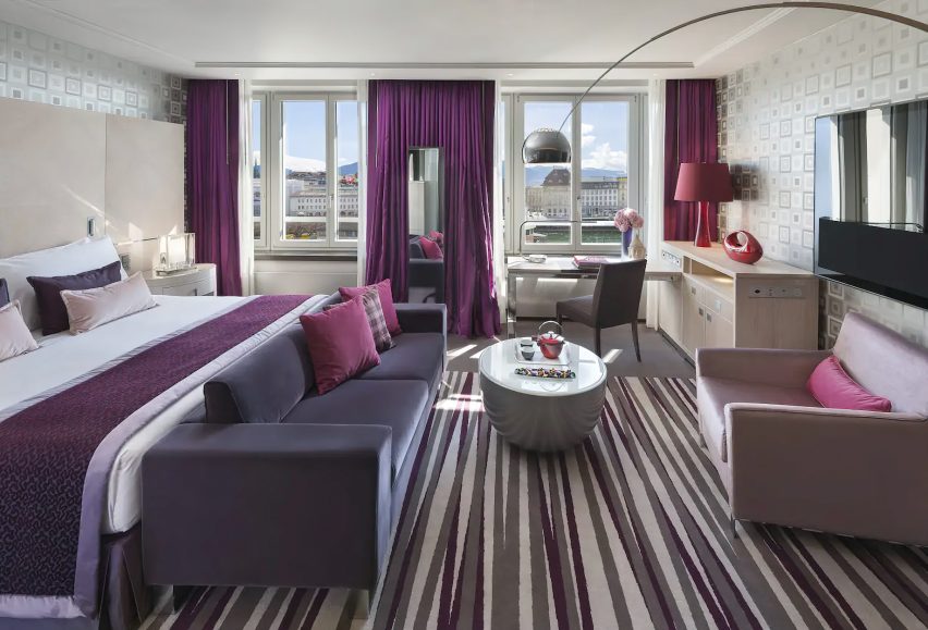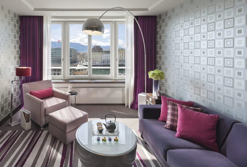 Situated on the right bank of the River Rhône, in a peaceful, yet central city-centre setting, the hotel overlooks the river and is within walking distance of attractions such as the Jet D’eau, St. Peter’s Cathedral and the United Nations building. Guests will find it within easy reach of Geneva’s chic boutiques, gourmet restaurants and just a short walk to the financial district. The beautiful Lake Geneva is the heart and lungs of Geneva, so make the most of the central location by taking a stroll along the lakeshore. Cross the river Rhône to the Jardin Anglais and explore the charming Old Town. Geneva is in the very heart of Europe and easily accessible through world-class air, rail, and road systems. Serving more than 100 destinations, the International Airport and central rail station are just a quick 10 and 5 minutes’ drive respectively from the hotel.