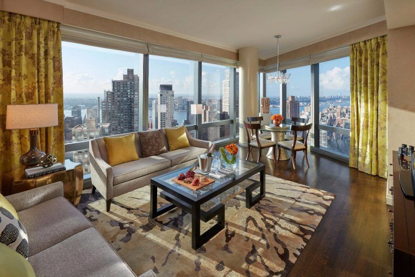 Towering high above the city, the hotels 244 luxuriously designed rooms and elegantly appointed suites offer an unbeatable setting with floor-to-ceiling windows offering breathtaking views of the Hudson River, Manhattan skyline or Central Park. Appointed with elegance and luxury, the accommodation styling combines contemporary elements with subtle touches of the exotic to deliver a stunning fusion of modern design with stylish oriental flair. Located on the corners of every floor, the 46 suites offer the most breathtaking views of Manhattan. In their own distinctive style, each has the feel of a luxurious residence. Each suite is an individual personality with distinct artwork and color schemes. Luxurious baths and entertainment areas provide guests with the ultimate New York suite experience.