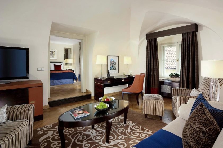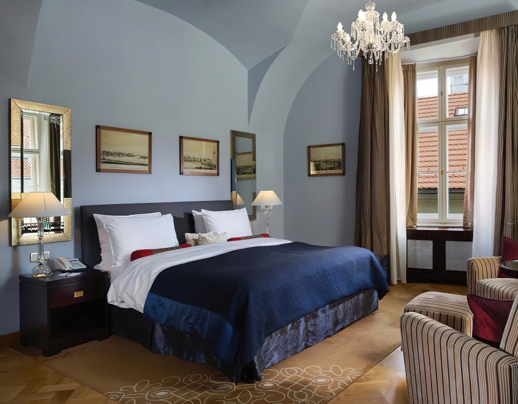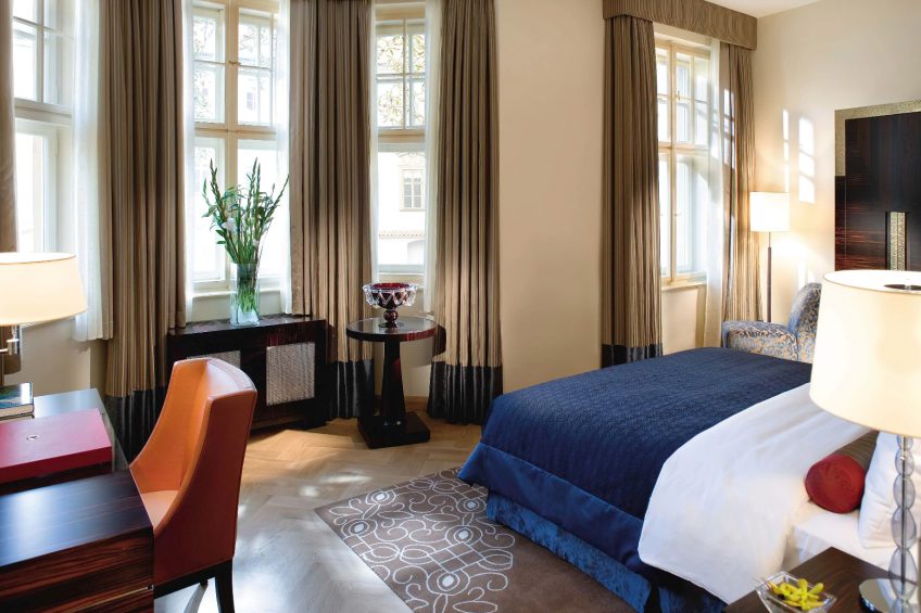 The hotel features some of the city’s most spacious and luxurious guest rooms which have been designed in a variety of individual interior styles, taking full advantage of the exceptional proportions of the existing building. The 99 rooms and suites exude a sense of elegance and offer an enticing blend of historic character and contemporary design reflecting a sense of tranquillity and sophistication. Rooms with bright large spaces and open windows offer breezy views of the courtyard and city while the hotel’s stunning suites offer historic architecture with breath-taking private views of the city. The Presidential Suite is the only accommodation in Prague to offer a private castle and 360-degree view of the city offering a truly unique and majestic guest experience with historic vaulted ceilings in a private tower spanning two floors of the hotel.