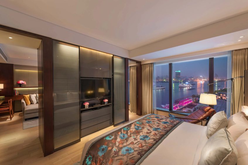 The hotel’s 318 spacious rooms and 44 suites embody both modern elegance and supreme comfort. Starting at 50 square metres, guestrooms feature original artworks, guest-centric technology and sweeping views over the Huangpu River, the Bund and the Shanghai skyline. The contemporary design of the guestrooms combines modern elegance with superlative comfort. A subdued colour palette exudes peace and tranquility. Interiors are richly appointed with plush rugs and natural hardwood floors. Custom furnishings and original abstract ink paintings of traditional Chinese garden landscapes by local artists add a touch of Oriental mysticism. Guests are guaranteed a restful night’s sleep in a king or twin bed with goose-down bedding, Frette linens and silky soft Ploh pillows. All rooms also feature a large executive desk, Illy espresso machine, a traditional teapot with Jing teas, and a luxury minibar.