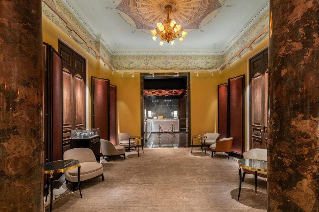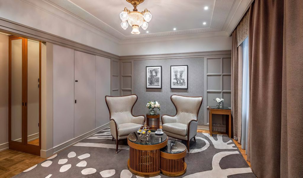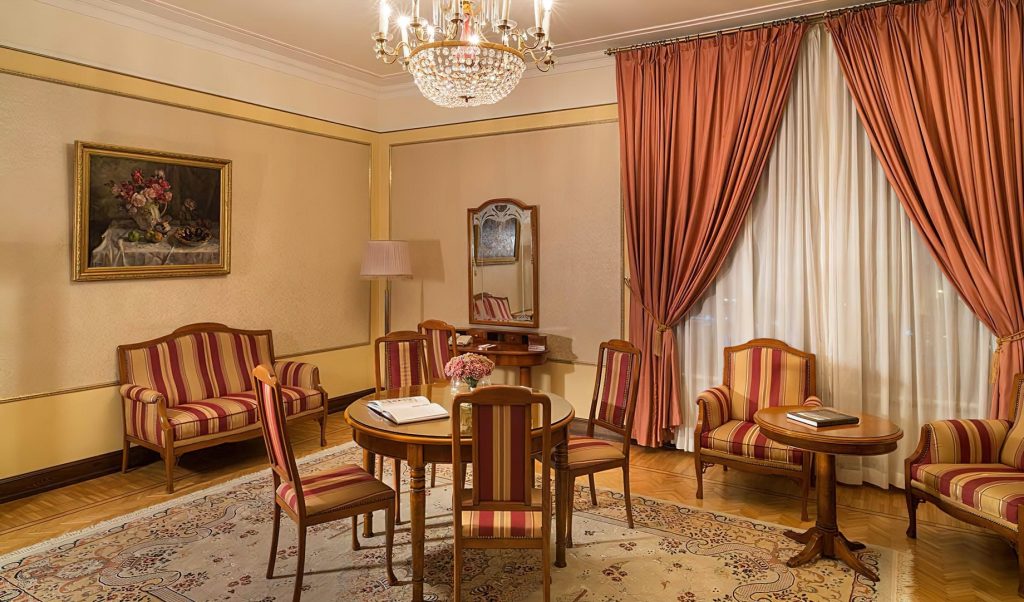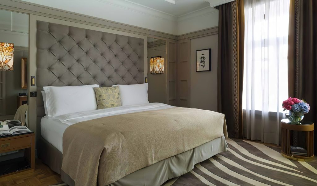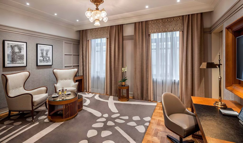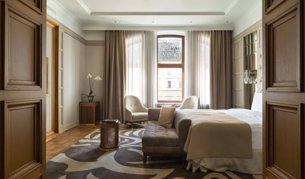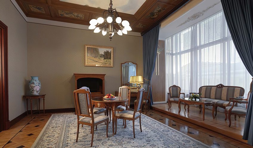 Inside the original rooms were designed and decorated in the pseudo-Russian style and in the spirit of neoclassicism. Now guests can choose between classical rooms with authentic early 20thcentury interiors and new Executive Room, Grand Superior, Deluxe, Deluxe Suite, Metropol Suite, Premier Suite, Ambassador Suite categories. These are the suites where the most renowned guests of the hotel used to stay. Some of the rooms overlook Teatralniy proezd or Lubyanka Square. The renovated rooms have retained the spirit of Moscow Art Nouveau style and the Metropol unique traits: windows with low sills overlooking the majestic historical center of the city, antique furniture and decorative elements from the late 19th and early 20th century. The new rooms are at least twice the space of historical rooms and have elements of past decor which are combined with modern design and functions.