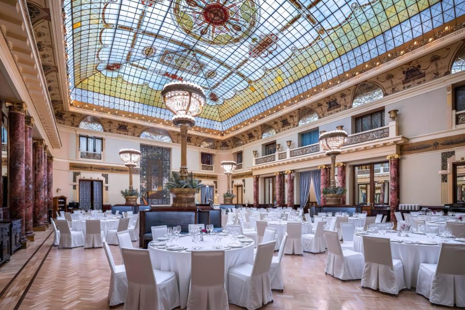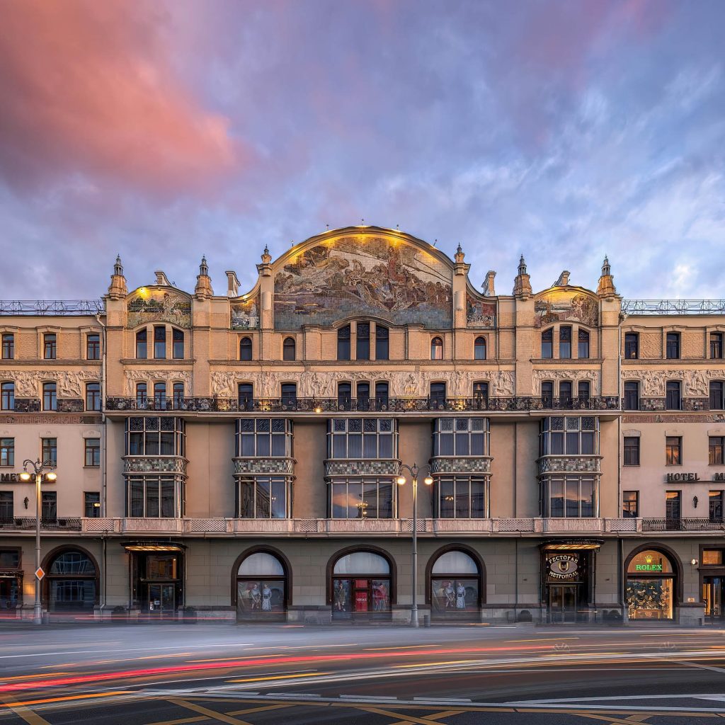 A legend of luxury in Russia, opened in 1905 the 5-star Metropol Hotel Moscow is considered one of the most significant historical and architectural monuments of the city of the Art Nouveau era. Built a grandiose cultural and leisure center by the famous philanthropist and industrialist Savva Ivanovich Mamontov, it is widely acclaimed as one of the most beautiful building in the city. Adorned with striking glass domes, openwork lattices and small turrets, the exterior central place on the facade is occupied by the panel “Princess of Dreams” made of colored ceramics from the Abramtsevo workshop based on a painting by Mikhail Vrubel. The murals and interior decor were made according to drawings and sketches by the artists Viktor Mikhailovich Vasnetsov and Konstantin Alekseevich Korovin. This is the oldest surviving operating hotel in Russia, previously claiming the title as the best hotel in the entire Russian Empire and setting new standards by which luxury was defined.