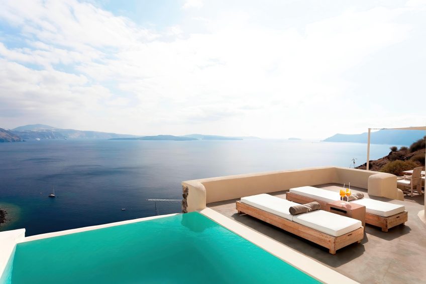 Perched high in a stunning and legendary location gently embracing rugged Caldera cliffs, Mystique Santorini is a Luxury Collection Hotel set upon a cliff edge in the small village of Oia. With spectacular views above the indigo waters of the Aegean Sea on the northern side of Santorini Island in Greece, this truly spectacular property delivers astonishing atmospheric sunsets with unparalleled scenic vista views from Oiaβs most famous cliffs. The dazzling elevated panoramas across the crystal-clear blue Aegean waters overlook the volcanic caldera within the crescent-shaped island of Santorini. A visit to Mystique promises to be both a breathtakingly serene and supremely unforgettable experience.
