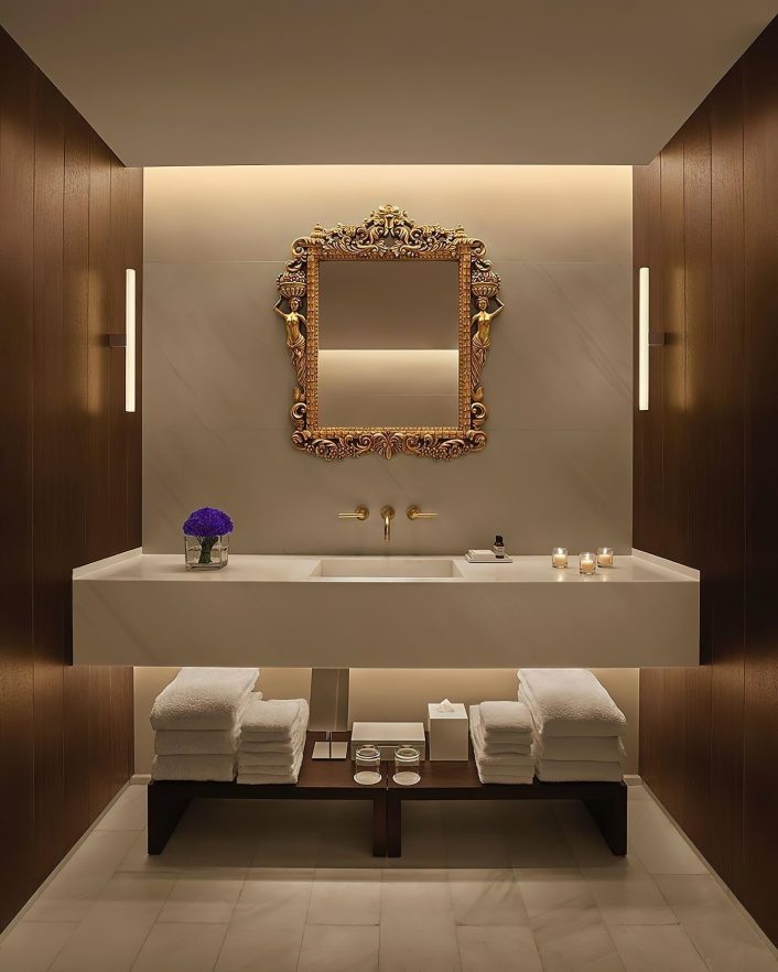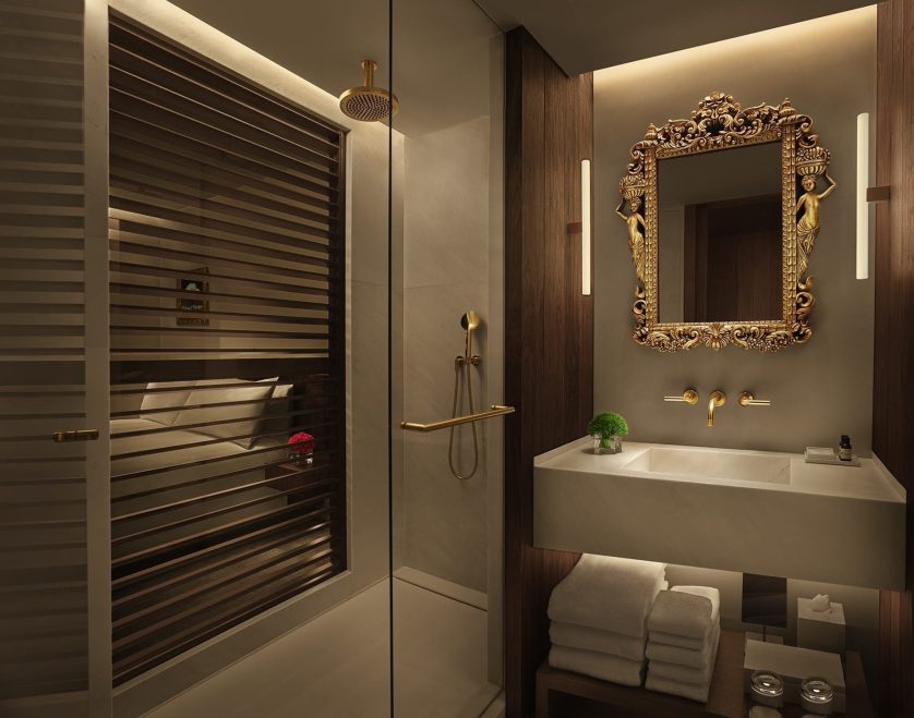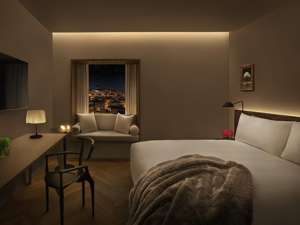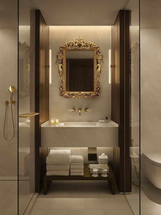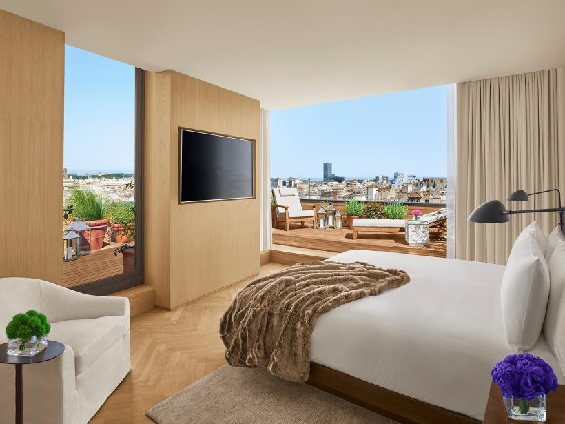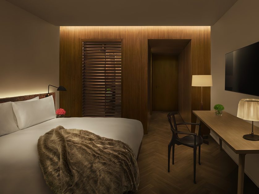 Designed to be timelessly elegant the stylish and sophisticated rooms, suites and penthouses include custom-made Le Labo bathroom amenities, stunning views over the cityโs iconic architecture and exclusive penthouse suites with private panoramic terraces. The accommodations welcome guests with imported luxury Italian linens and unique, custom designed furniture covered in a range of selected fabrics, such as the embossed Spanish leather headboards, adding a warm and sophisticated touch and feeling of insulated calm within the rooms.