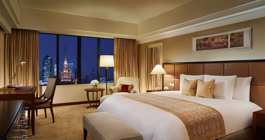 The hotels decor is modern-meets-traditional with Art Deco motifs and contemporary design elements that are mixed and stirred with the flair that is characteristic of Shanghai, the Pearl of the Orient. Every detail creates a seamless, serene experience throughout the 610 guest rooms and suites delivering elegant accommodations with city views and contemporary Chinese décor. Spacious layouts, striking skyline views and classically inspired décor are shared elements among the hotel’s five-star accommodations.