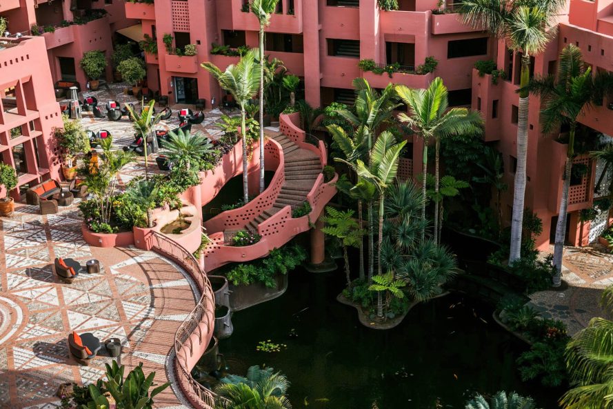The Ritz-Carlton, Abama is a 160 hectare (private estate) tucked away in Guía de Isora, a tranquil and little-known area on the island of Tenerife, Spain. This Canary Islands resort exists in a stunning ‘finca’ setting of natural beauty, surrounded by lush and vibrant vegetation, volcanic landscapes, and panoramic views of the Atlantic Ocean. Designed by Melvin Villarroel and with romantic Moorish references to an Arab citadel, the resort includes seven swimming pools, access to a secluded beach, waterfalls, and exuberant subtropical vegetation, composed of 90,000 trees with 300 different species of palms and shrubs. Long a favourite destination of European travellers, Tenerife is a world of wonders, an island oasis of eternal spring.The resort’s prime location, unique and varied topography combines lush botanical landscaping, clifftop terrain and its own secluded beach curating a landmark destination of escapism.