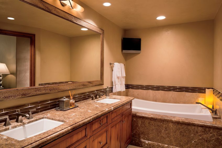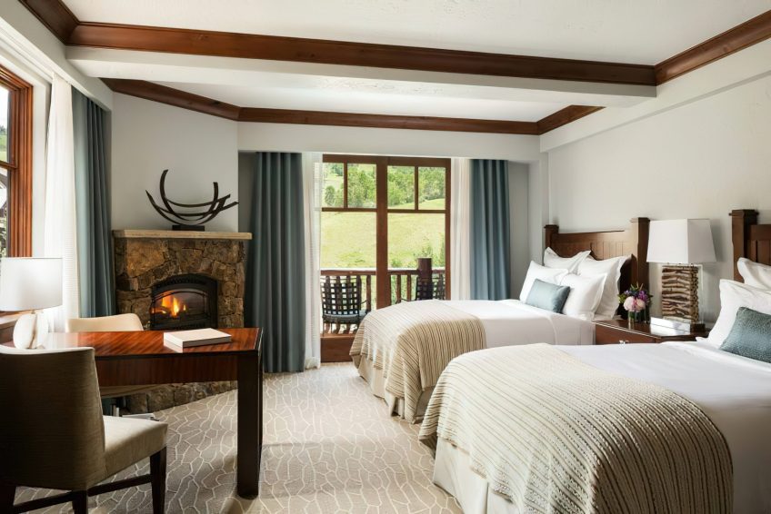The grand lodge architectural style of The Ritz-Carlton, Bachelor Gulch exudes authentic Rocky Mountain luxury and captures the essence of the surrounding national forest throughout its 180 suites and rooms. The accommodations are a luxurious translation of a traditional lodge, incorporating stone fireplaces and wood accents within their spacious layouts. Approximately 95 percent of guest rooms provide mountain views and select rooms offer a private balcony. There are 100 fireplaces throughout the resort, 77 located in guest rooms. The entire resort is air conditioned for the occasional hot summer day and each guest room corridor is humidity controlled to counter the dry mountain climate.