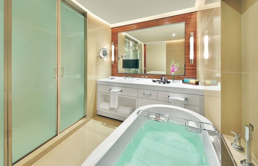 A pearl of luxury on the Arabian Gulf, The Ritz-Carlton, Bahrain is a secluded paradise in the heart of the Seef District in Manama, Bahrain. Located within 20 acres of lush gardens and golden sandy beaches on the Gulf of Arabia, this exceptional five- star city resort is one of the most elegant destinations in Bahrain, and a place where guests can immerse themselves in the local culture, enjoy extraordinary cuisine and explore the dazzling capital city of Manama, adding yet another level of indulgence to a collective range of extraordinary experiences. This outstanding Bahrain luxury resort features world-class cuisine, a nurturing spa, a 37-slip marina, and an array of water sports, all just steps from your door. With superb amenities and impeccable service, this luxury hotel and resort in Bahrain beckons you to discover all this beautiful Arab nation has to offer.