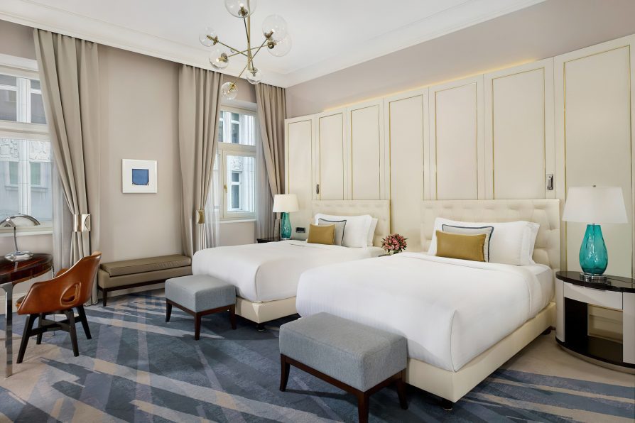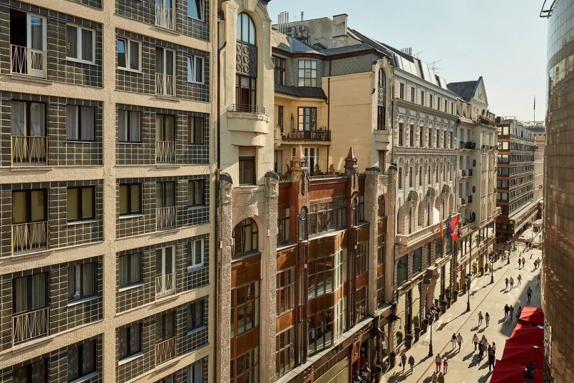 Guests can retreat to 170 elegantly appointed rooms and 30 suites where sleek lines and tall ceilings are balanced by expansive windows framing views of Elizabeth Park and city landmarks. Whilst many of the historic building’s original architectural details have been retained, including elegant statues on the exterior walls, the interiors offer guests a spacious and relaxed contemporary environment, inspired by the cool colours and swirling water of the Danube River.
