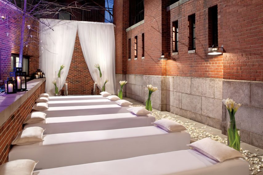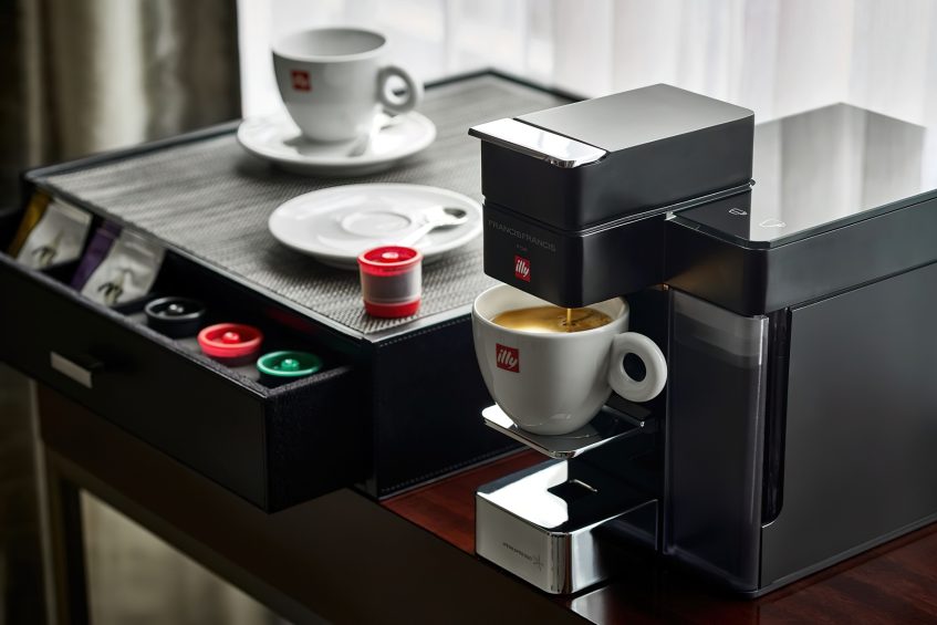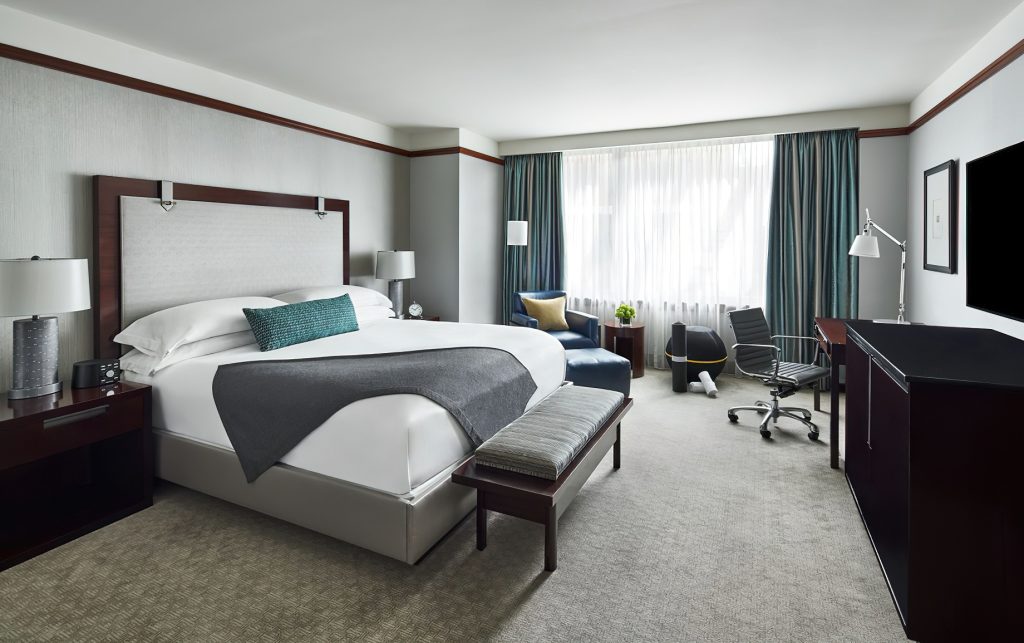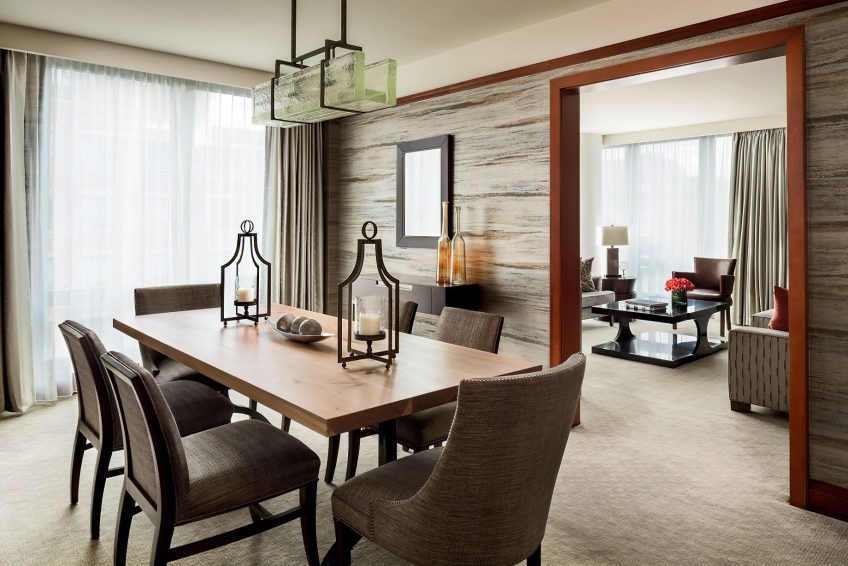 To bridge the historic building’s past to the present, the 86 guest rooms and suites are artfully designed to contrast the luxury Gerogetown hotel’s chic exposed brick and metal features with a soothing color palette of earth tones, enhanced with stunning accents of sapphire blue and burnt orange throughout. Each luxurious guest room features soft lighting and award-winning design elements, such as handcrafted wallpaper by renowned artist, Maya Romanoff, Tolomeo desk lamps, and plush fabrics by David Rockwell for Jim Thompson. To complement the rich interiors, the accommodations draw from residential comforts to create welcoming spaces including Wellness Rooms that include health-focused amenities.