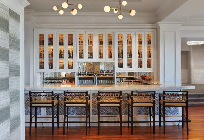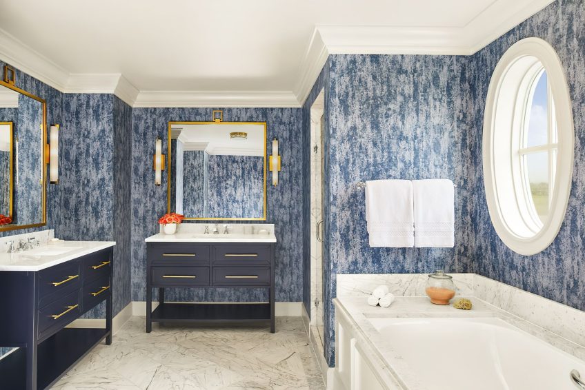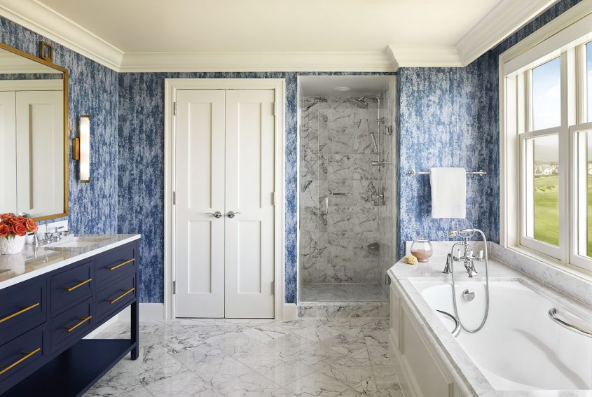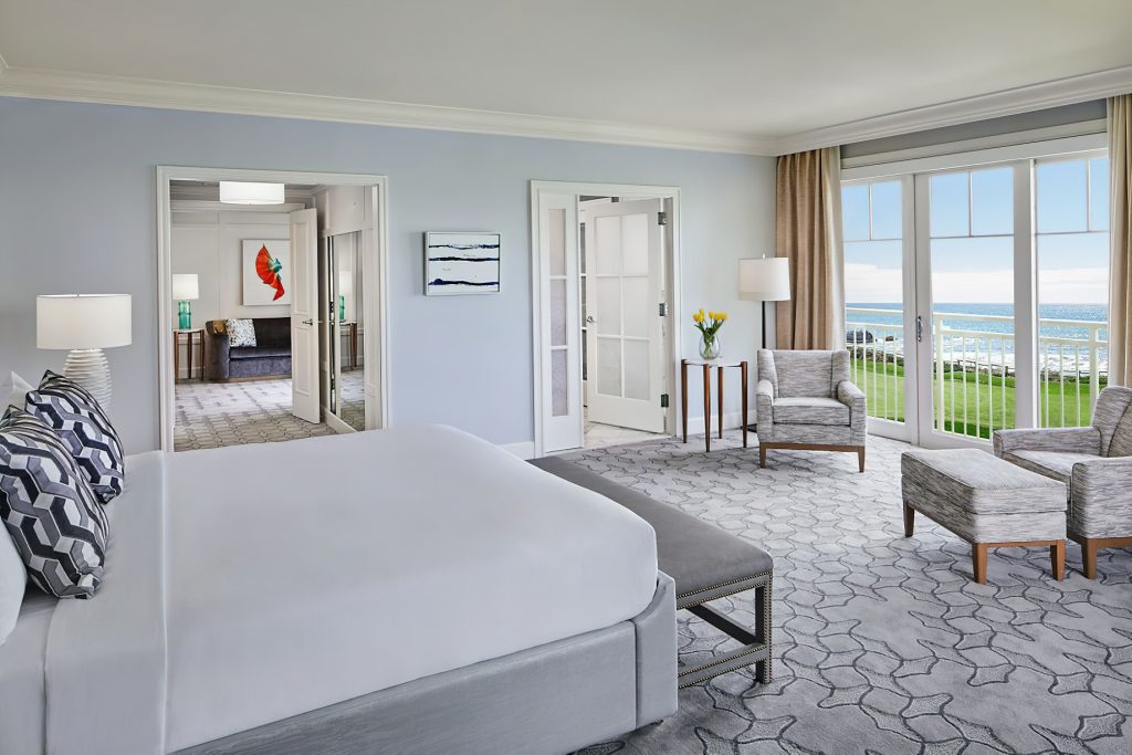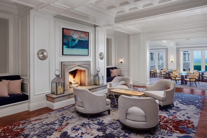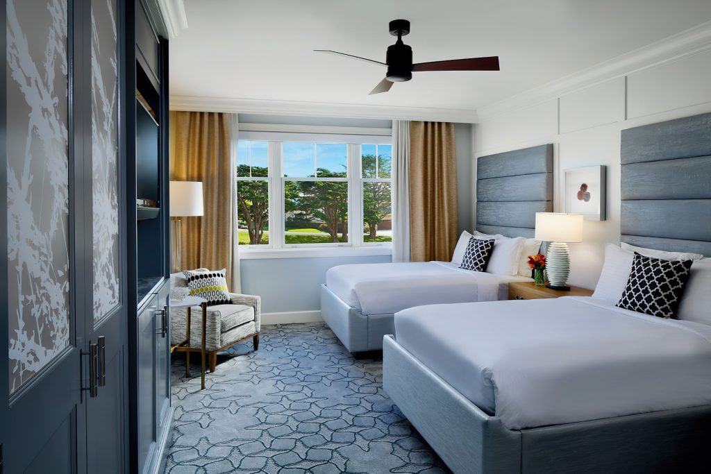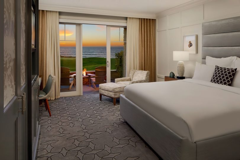 The coastal decor inspired by the surroundings evokes peace and tranquility throughout the resort. Taking cues from its seaside location and โgrand seaside lodgeโ architecture, the resorts 261 rooms and suites boast a clean, modern aesthetic. Clear days saturate the bright rooms with warm resplendent Pacific blues and golden sun rays while overcast days envelope the guest in moody Northern coast grays. Elegant textiles apply these palettes through soft textures blended with bold prints and organic patterns. While gazing out of the bedroom windows, the carpet through pattern and color becomes one with the ocean beyond creating a mesmerizing visual effect in which one seems to extend to the other. Contemporary high-end furnishings and carefully curated design touches are found throughout.