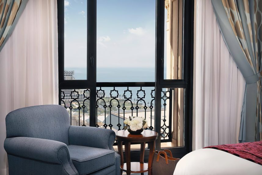 The interior of the hotel is richly decorated, with hand-painted ceilings and luxurious finishing that will immerse your senses in extravagance before you enter the comfort of your personal guest room or suite. The 224 guest rooms, include 30 Royal Suites, with 500 square meters of lavish design and space, offer a view of the hotelβs gardens as well as a direct view of the Red Sea. The Royal Suite has a master bedroom, expansive Majlis, private dining room and office. The 30 Executive Suites are luxuriously designed, well-appointed spaces with a small pantry, living room and master bedroom.