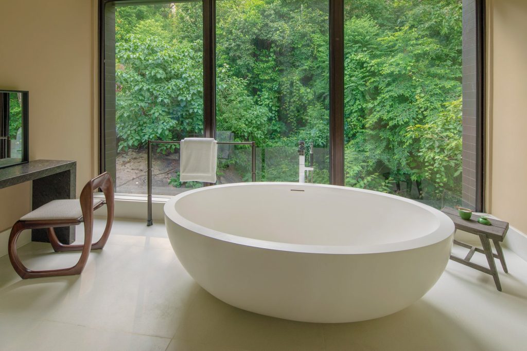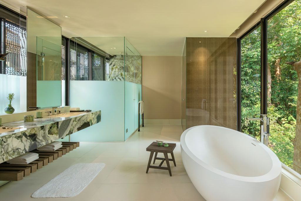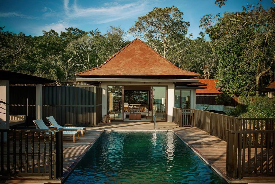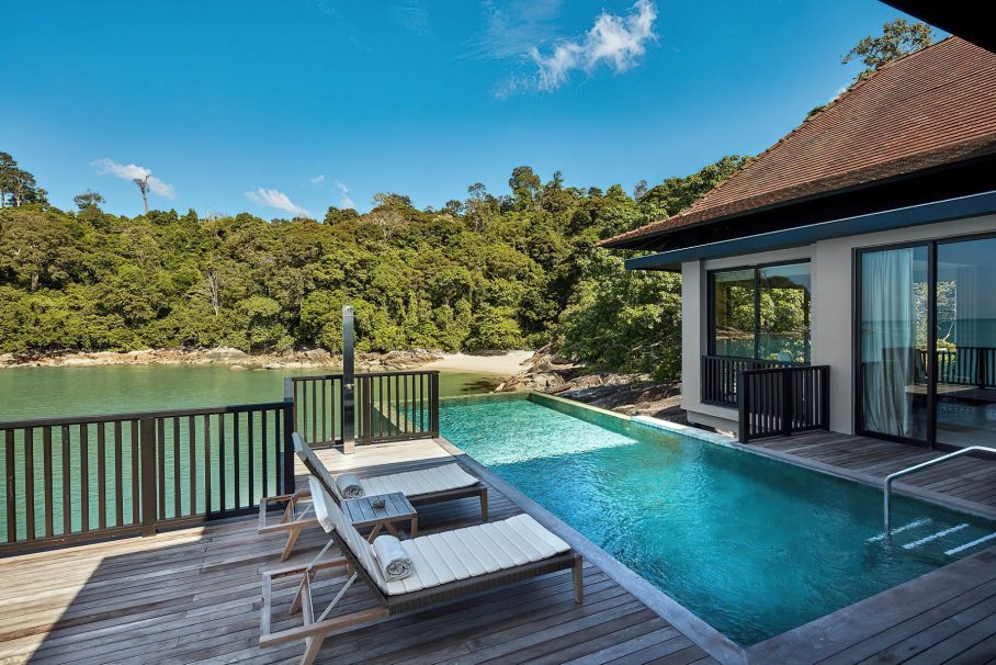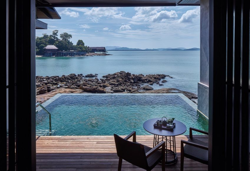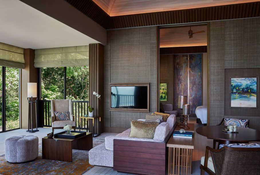Designed by Philippe Villeroux of Kuala Lumpur-based Tropical Area Architects, the resort has been created to fully immerse travellers in the islandโs natural ecosystem. Spacious interiors in the 70 guest rooms, 15 suites and 29 villas are framed by delicate references to Malay architecture, which can be seen in the intricately designed features, large windows, and gabled roofs. With private outdoor spaces, glass walls and a palette of natural materials, the guest rooms and villas at The Ritz-Carlton, Langkawi invite the outdoors in with views of the surrounding rainforest and ocean complementing the contemporary Malaysian dรฉcor, while beachfront villas also offer private pools.