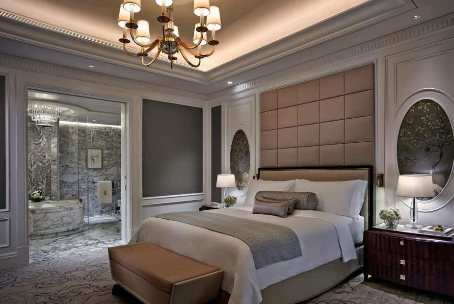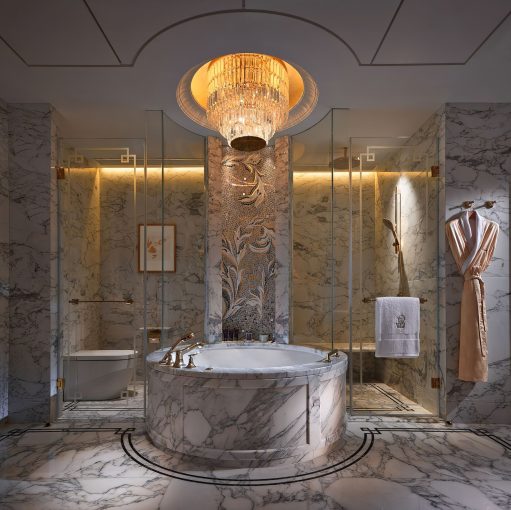 An all-suite hotel with over 250 suites on the top floors of the integrated resort, The Ritz-Carlton, Macau is luxuriously adorned in Azulejo tiles, a form of Portuguese or Spanish ceramic tile that has evolved into the Rococo style panels that are synonymous with the heritage dΓ©cor found in Macau today. The suites are residentially inspired havens of luxury offering a minimum of 800 sq. ft. and include separate living spaces, marble-clad bathrooms with soaking tubs and large windows overlooking the city, hotel, or pool. Designed in timeless European style, reflecting the Portuguese heritage of Macau that offers an elevated take on the luxury resort experience.