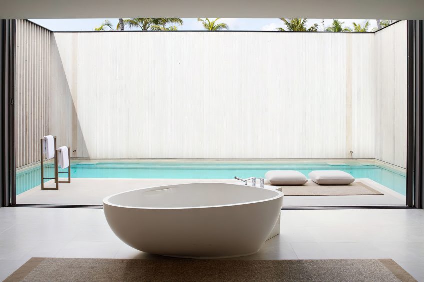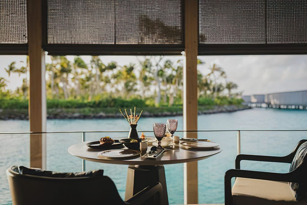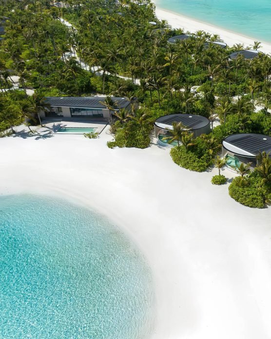 The resort features 100 luxurious one- to three-bedroom villas, either set over crystal clear waters, or nestled along pristine beach coves, each offering spacious living spaces that blur the line between indoors and outdoors with panoramic sliding doors, a sun deck with a private infinity pool and breathtaking views. Inspired by its natural surroundings, the design features stunning minimalist architecture including the elements of swirling water and ocean breezes, which are incorporated into a design narrative that is rooted in the shape of a circle that also represents the flow of island life.