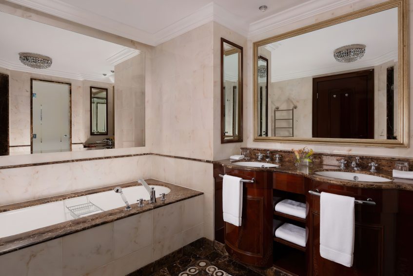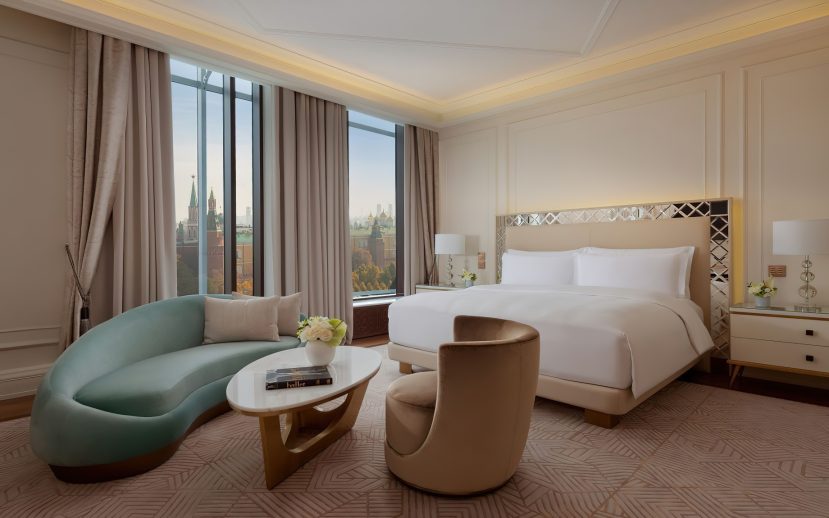 The Ritz-Carlton, Moscow offers luxury accommodations designed to anticipate every need and desire with gracious amenities and impeccable service. The hotels 334 guest rooms and suites offer lavish layouts overlooking the city. Light and sophisticated materials and colors give a timeless yet modern feel, while molded ceiling and wall details are complemented by elegant accent furniture set to the backdrop of floor-to-ceiling windows and the historical heart of Moscow. The exclusive Imperial Suite’s luxurious design is enhanced by flooring inspired by the magnificent marquetry floor of the Kremlin’s St. George Hall, a homage to the impressive views of Red Square and the Kremlin itself.