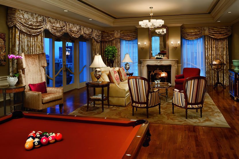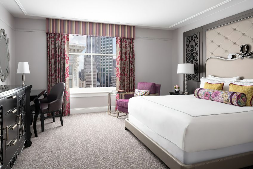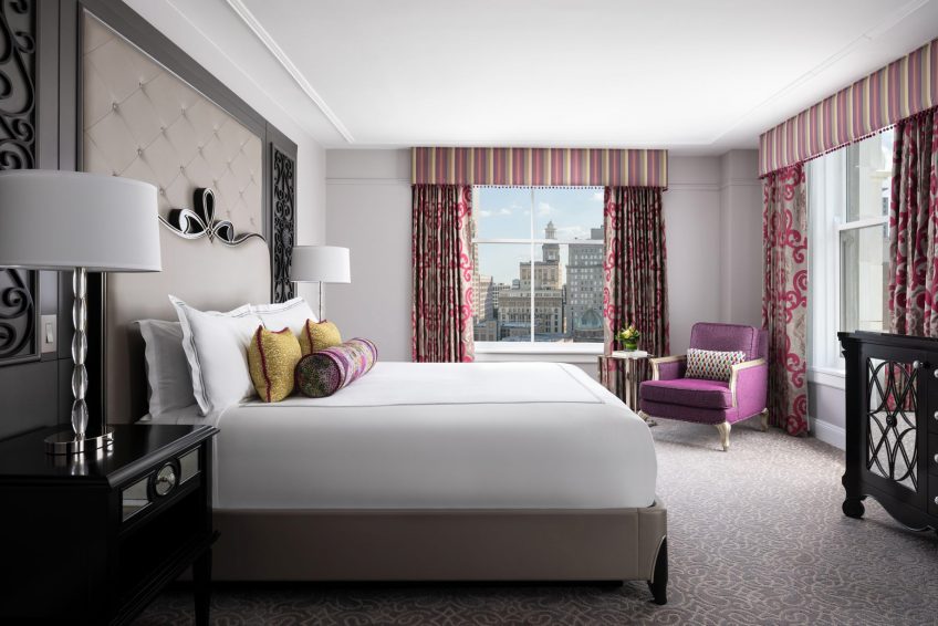 The hotel 527 rooms and suites are inspired by New Orleans’s heritage, with balconies overlooking the French Quarter. Capturing the essence of New Orleans, the hotel’s luxury accommodations feature two distinct color stories with Executive Suites donning sky blue and orchid smoke hues, and Deluxe Rooms revealing shades of ruby and slate. For those seeking the crown jewel of accommodations, The Residence, boasts more than 6,500 square feet of indoor and outdoor living space high above the French Quarter. True to its name, The Residence provides all the comforts of home with two bedrooms, living room, dining room and fully equipped kitchen, as well as an expansive private outdoor terrace for relaxation or entertaining overlooking the city.