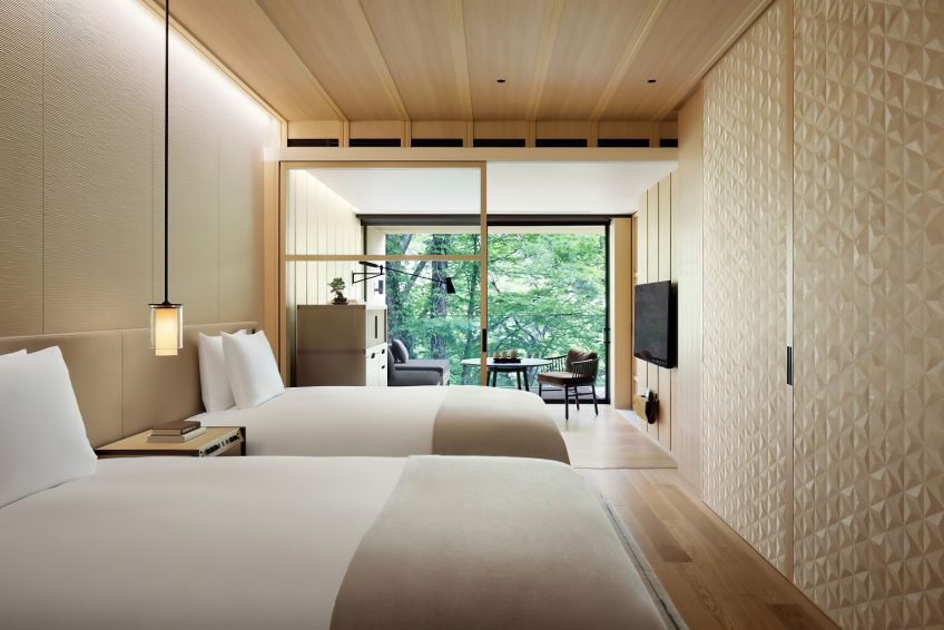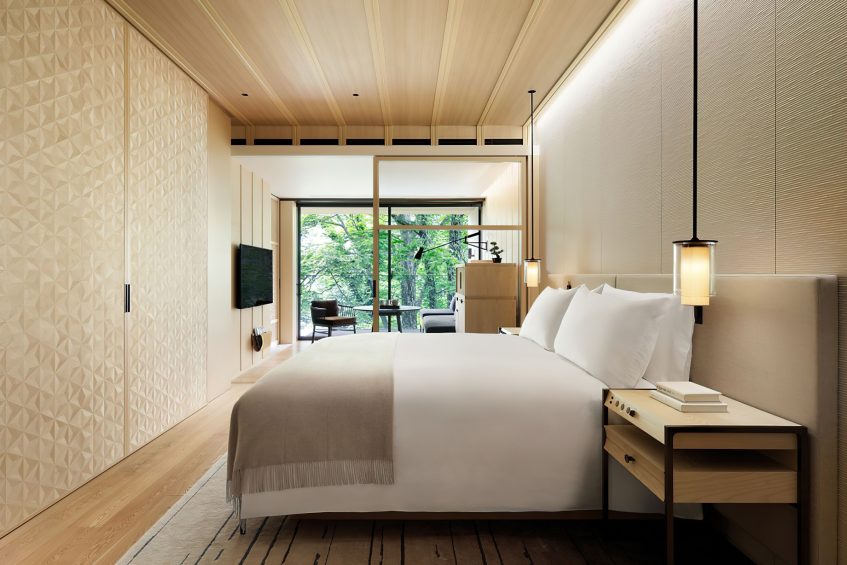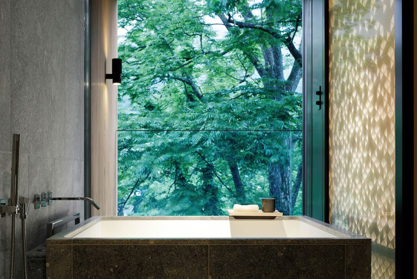 Offering luxury combined with traditional and contemporary expressions, the 94 guestrooms and suites start at a generous 57 square meters in size and include 9 Lake Chuzenji View Suites as well as the 277-square-meter Ritz-Carlton Suite. Uniting modern flair with tasteful Japanese design, each residence has a private balcony and a semi-outdoor lounge area inspired by the engawa veranda of traditional Japanese architecture, inviting guests to take in the beauty of the national park. The room interiors feature a sophisticated, coordinated color scheme, and capture the essence of Japan’s history and culture with details inspired by the local Tochigi Prefecture craft of Kanuma Kumiko.