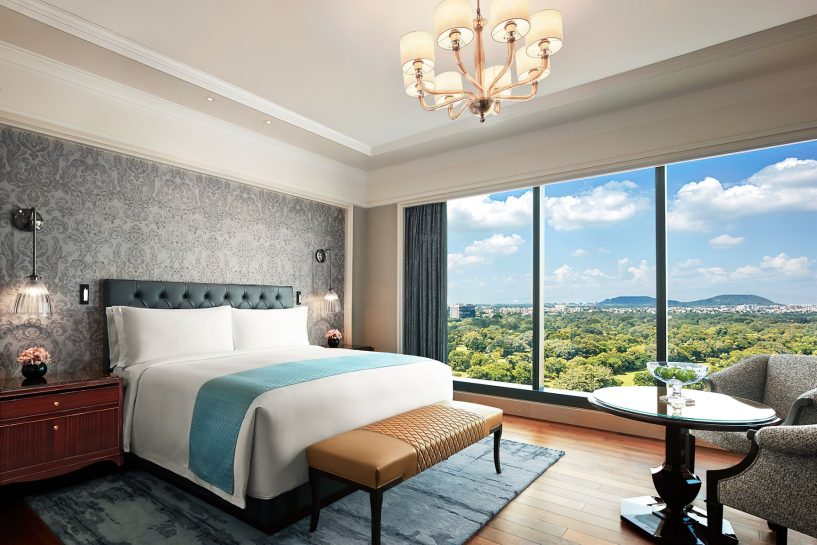 The rooms and suites at The Ritz Carlton, Pune are outfitted with bespoke details and a signature luxury accommodation that include sweeping views of the golf course and the Pune cityscape. Set to elevate luxury in Pune, the hotelโs design reflects a seamless union of classical grandeur and timeless sophistication, offering both traditional and modern points of view. Small details such as design motifs inspired by Indian silhouettes and classic chandeliers gracefully evoke a sense of place.