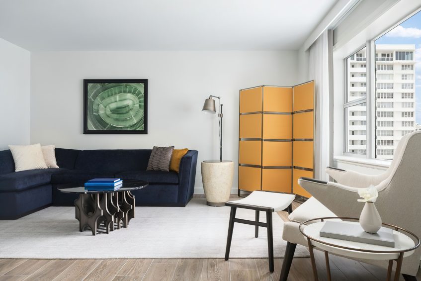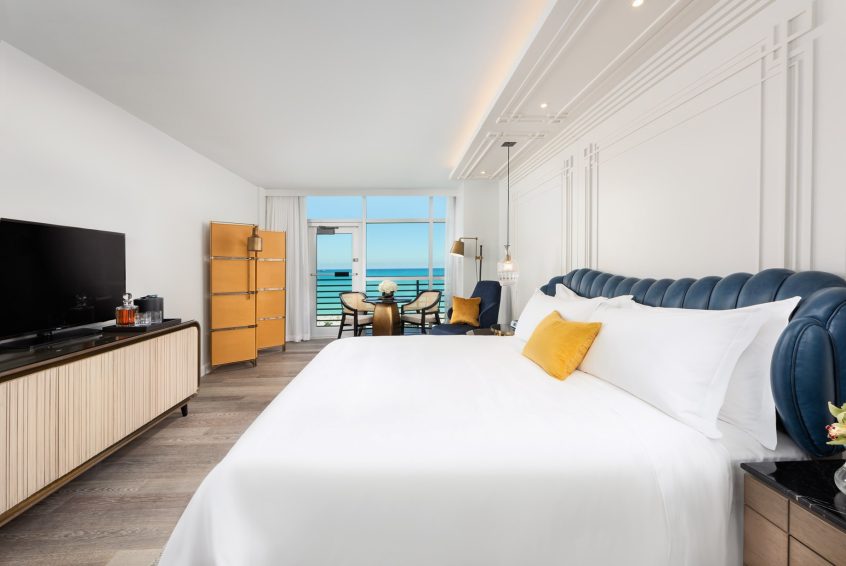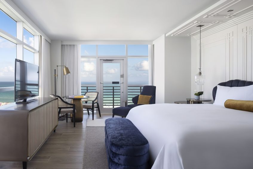 The resort features guest rooms that draw inspiration from the azure waters of the Atlantic Ocean, Miami’s golden sandy beaches and the vigor of South Beach and the alluring and tropical rhythm of the destination. Inspiration from the lush surroundings of sparkling blue waters, beach, and foliage is coupled seamlessly with the renowned architectural genius of Morris Lapidus in 1953 to create a hotel experience that celebrates the exoticism of this magical city. Guests enjoy spacious layouts, luxe bathrooms with standalone tubs and city and ocean views, while the Club Level offers lounge access and exclusive services.